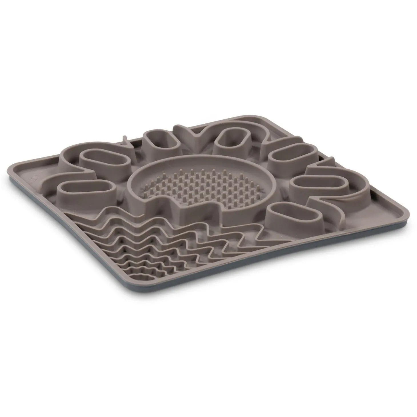 Messy Cats Framed Interactive Silicone Multi-Surface Grey Lick Bowl Mat is designed to stimulate your pet while slowing their intake. Let your pet eat up those healthy soft treats, supplements or food. Just spread your pets favourite snack over the surface or easily freeze liquids and spreads like milks, broths, peanut butter and yogurts to prolong their enjoyment. Structured frame to help reduce spillage so you can carry it with ease! The 3 distinct surfaces a dual-ridged puzzle, bowl and lick areas is designed to challenge and inspire your pet’s natural instincts, keep them focused and engaged when eating, with the added benefit of slowing their intake.