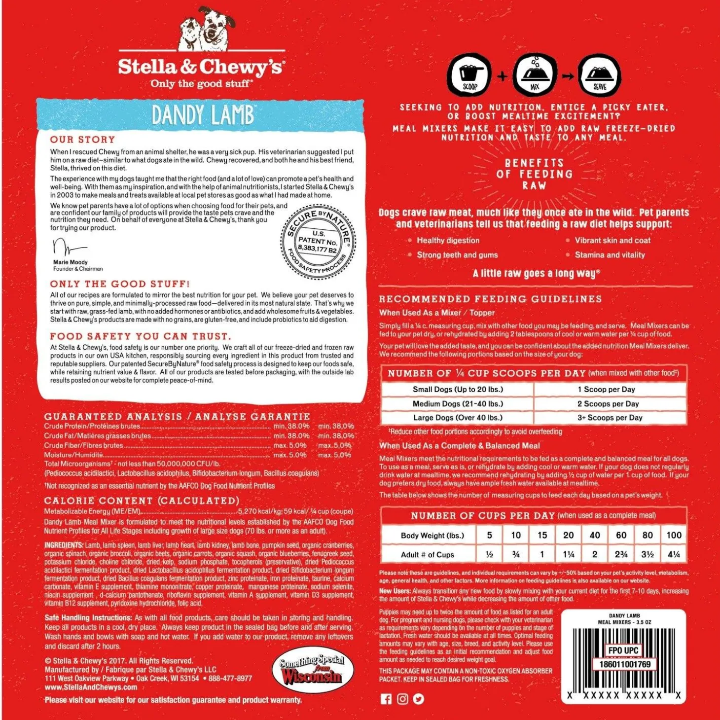 Perfect for picky eaters! Dogs naturally crave meat, much like they ate in the wild. That’s why every batch of Dandy Lamb Meal Mixers starts with lamb organs and bone plus 100% organic certified fruits and vegetables to guarantee your pet is eating as nature intended. Every recipe from Stella & Chewy’s is grain-free and minimally processed. All ingredients are reputable & responsibly sourced. Add a scoop to your dog’s kibble for a boost of real freeze-dried raw food nutrition and taste.