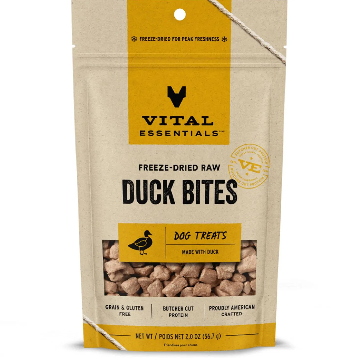 - Freeze-Dried Raw Duck Bites Dog Treat: Vital Essentials Freeze Dried Dog Treats pack more protein than industry standard into every bite to deliver the peak vitality your dog deserves. The natural freeze-dried raw dog treats are made from responsibly sourced, premium butcher cut duck.