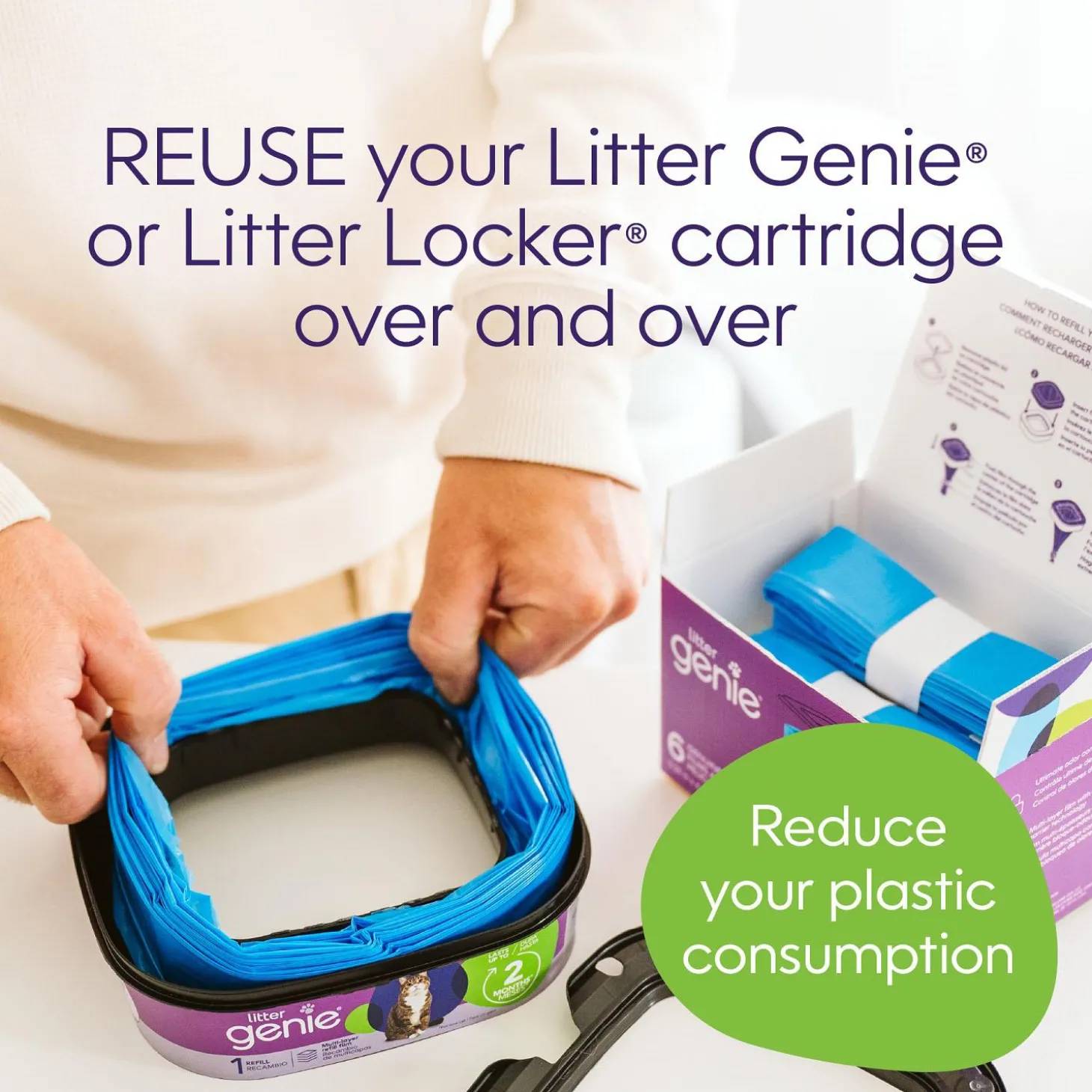 - More sustainable: reuse your Litter Genie cartridge with our genuine film; film contains 25% post-consumer recycled material