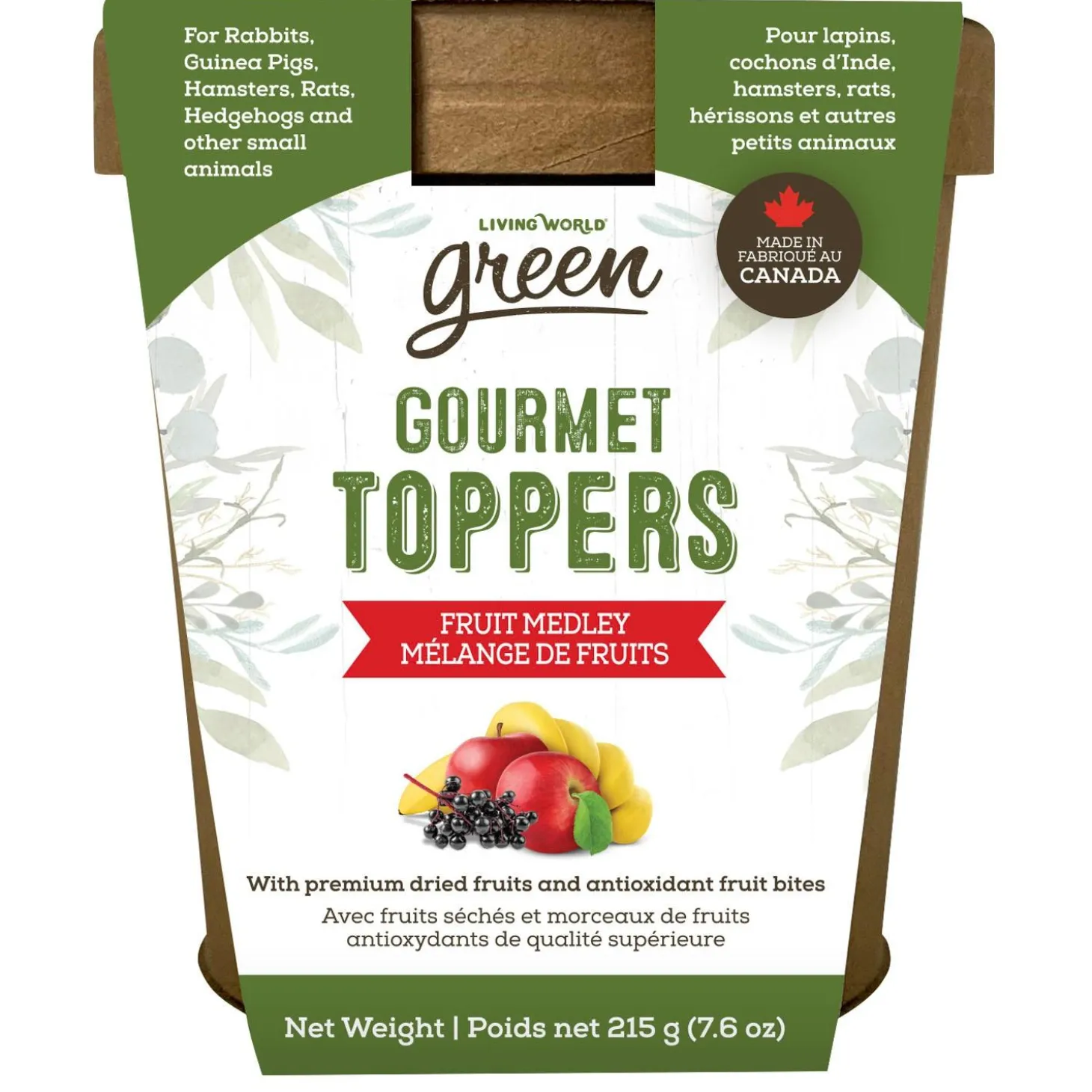 Living World Green Gourmet Fruit Medley Toppers Small Animal Treats enhances the texture and flavour of your small pet’s next meal. Sprinkle on top of hay or food to add variety and encourage foraging or simply serve alone as a treat. This meal add-on is highly palatable, and include taste-tempting ingredients that appeal to small animals.