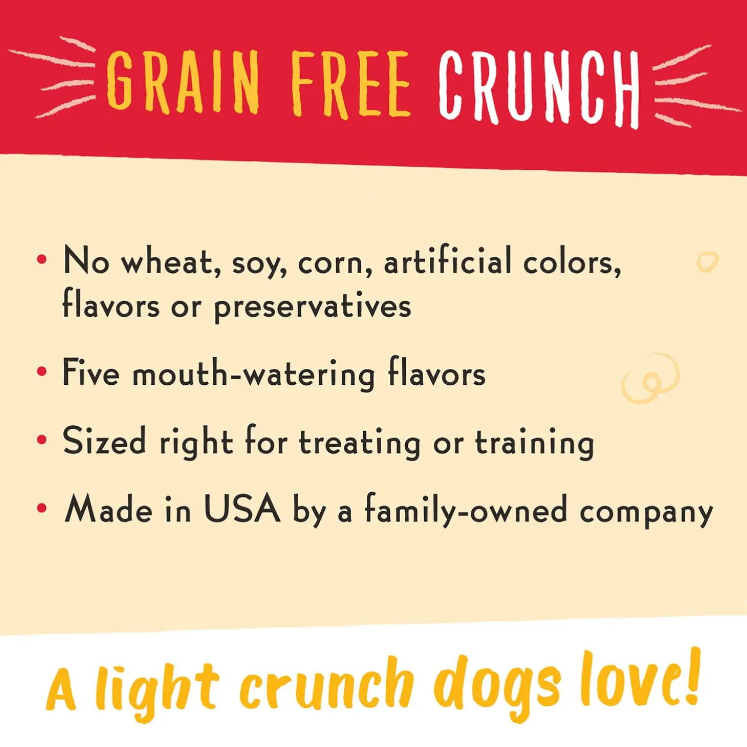 - Grain free, low-fat treats are less than 3 calories per treat, so they won’t disrupt your pup’s diet