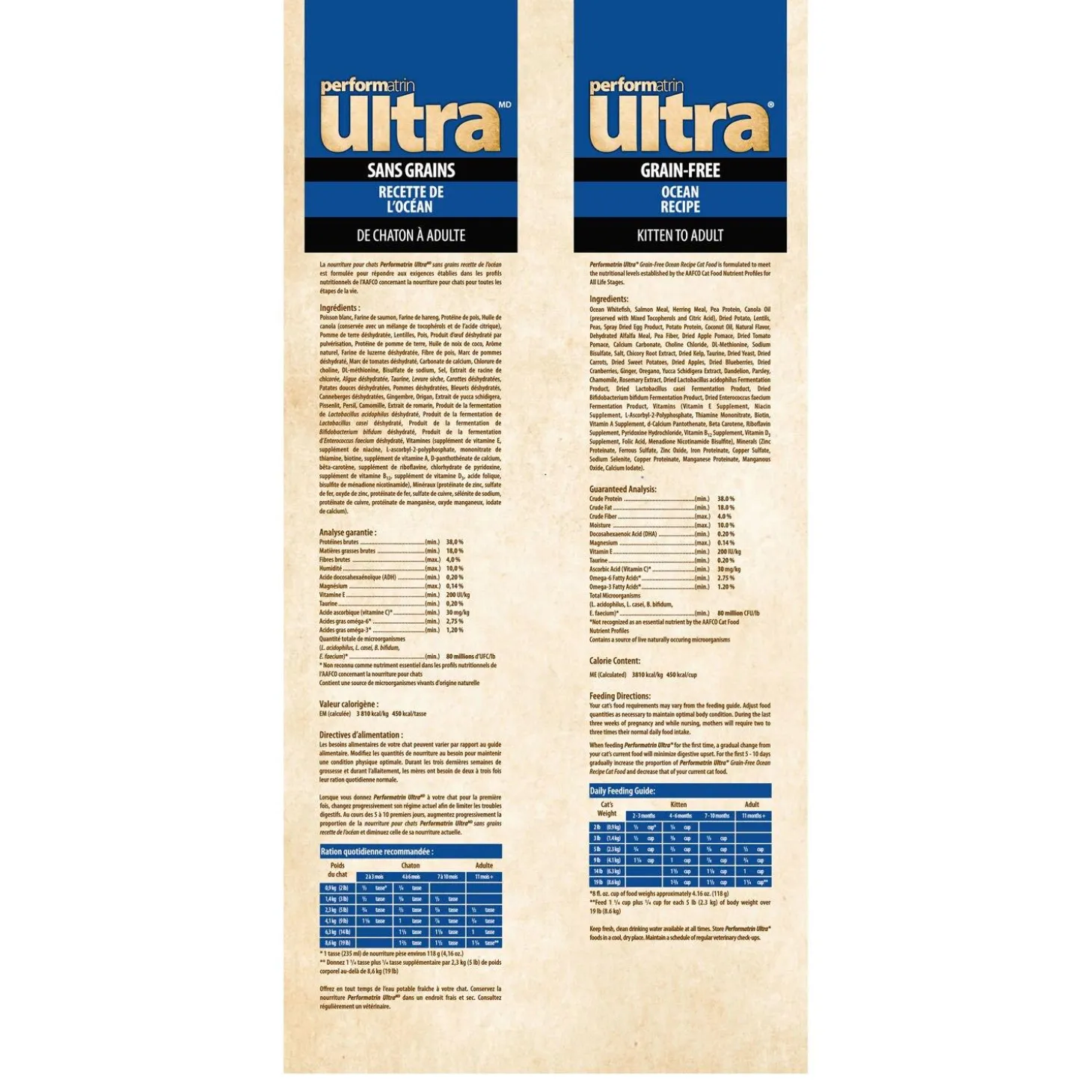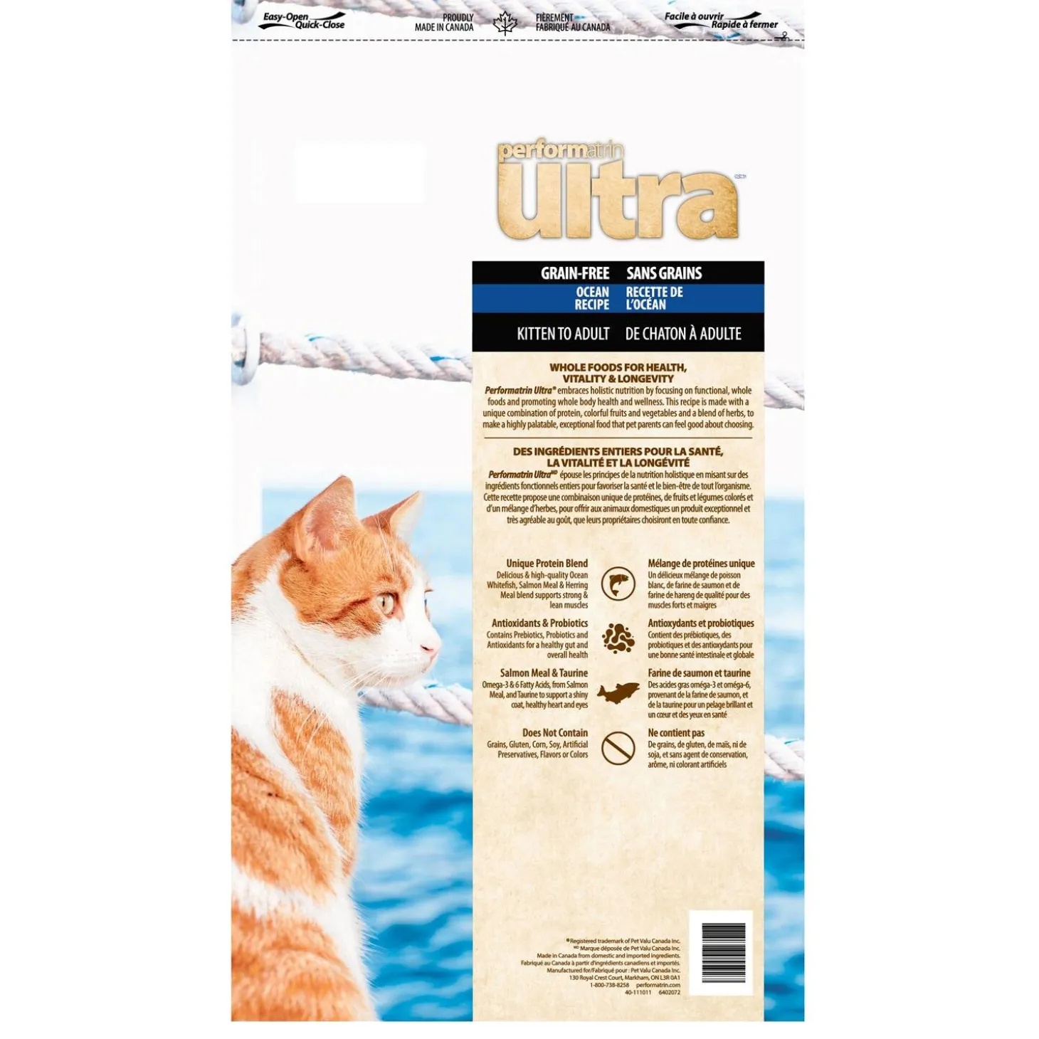 Performatrin Ultra Grain-free Ocean Recipe Cat Food embraces holistic nutrition, focuses on functional whole foods. Made with a unique protein blend of whitefish, salmon meal, and herring meal to support strong & lean muscle, fruits & vegetables like sweet potato, carrots, cranberries, and blueberries for immune health. This recipe meets your cat’s daily requirements and promotes whole body health and wellness.