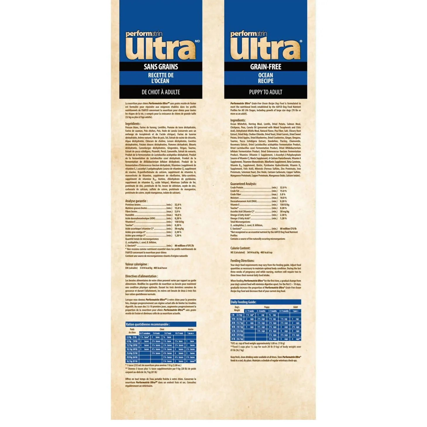 Performatrin Ultra Grain-Free Original Recipe Large Breed Puppy Dog Food embraces holistic nutrition, focuses on functional whole foods and is made for the growth pattern, daily energy, and nutrient requirements of a large breed puppy, including a larger size kibble. Made with a unique protein blend of high-quality turkey, salmon meal, and duck meal to support strong & lean muscle, fruits & vegetables like sweet potato, pumpkin, cranberries, and blueberries for immune health. This recipe meets your large breed puppy’s daily requirements and promotes whole body health and wellness.