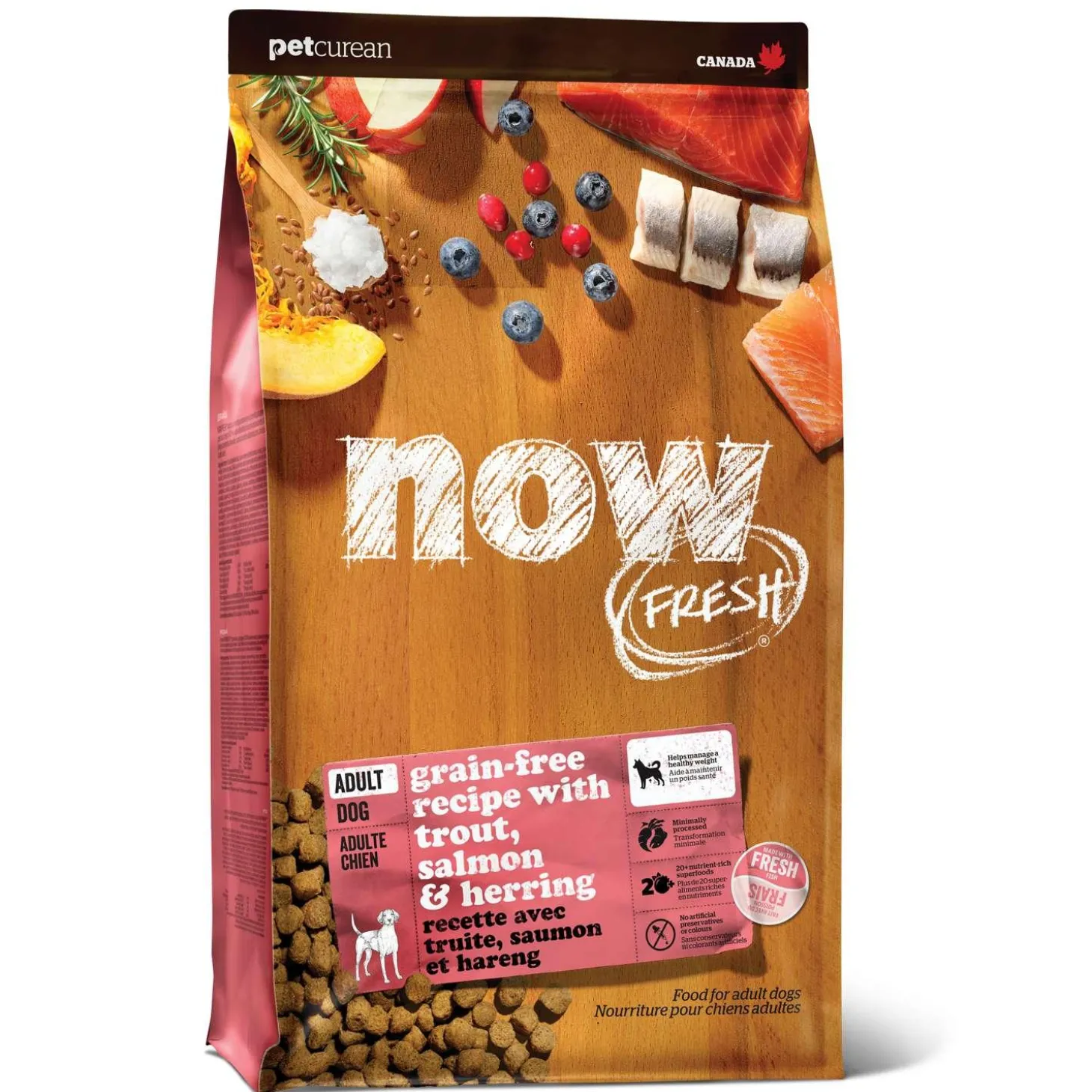 Now Fresh Grain-Free Trout, Salmon & Herring Recipe Adult Dog Food is more than just a meal; it’s a step towards holistic health for your furry companion. Crafted with love, this recipe combines fresh trout, salmon, and herring to provide highly digestible protein and essential omega-3 fatty acids, supporting a healthy skin and a soft, lustrous coat. This food is carefully balanced with nutrients, like L-carnitine, for weight management, to help your dog stay agile and healthy. With added fibre-rich pumpkin and sweet potato for digestion, plus a boost of antioxidants from blueberries and cranberries, this food is designed to nourish your dog from the inside out, making every bite as beneficial as it is delicious.