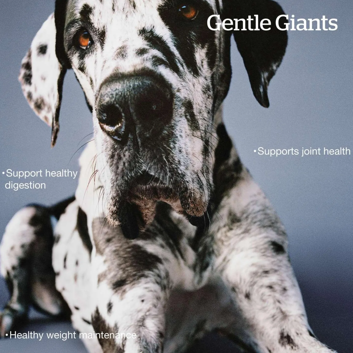 Now Fresh Grain-Free Turkey, Salmon & Duck Recipe Large Breed Adult Dog Food combines high-quality protein from fresh turkey, salmon, and duck to help maintain strong muscles, with natural sources of glucosamine and chondroitin from ingredients like New Zealand green mussels to support joint health and mobility. Big dogs need big care, and this recipe is crafted with their specific needs in mind. Digestive health is crucial, especially for larger breeds, so pumpkin and sweet potato is included to provide fibre to support digestion and healthy stool. Each bite is packed with nutrition tailored to keep your large dog healthy, active, and happy.