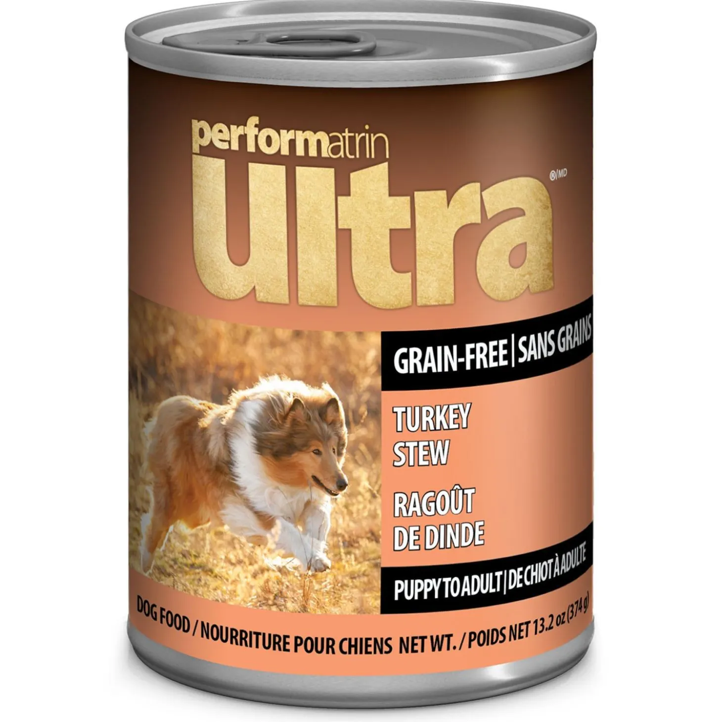 Performatrin Ultra Grain-Free Turkey Stew Dog Food embraces holistic nutrition, focuses on functional whole foods and is made with high-quality turkey, vegetables, fruits, and herbs. A complete and balanced meal that meets your dog’s daily requirements and promotes whole body health and wellness.