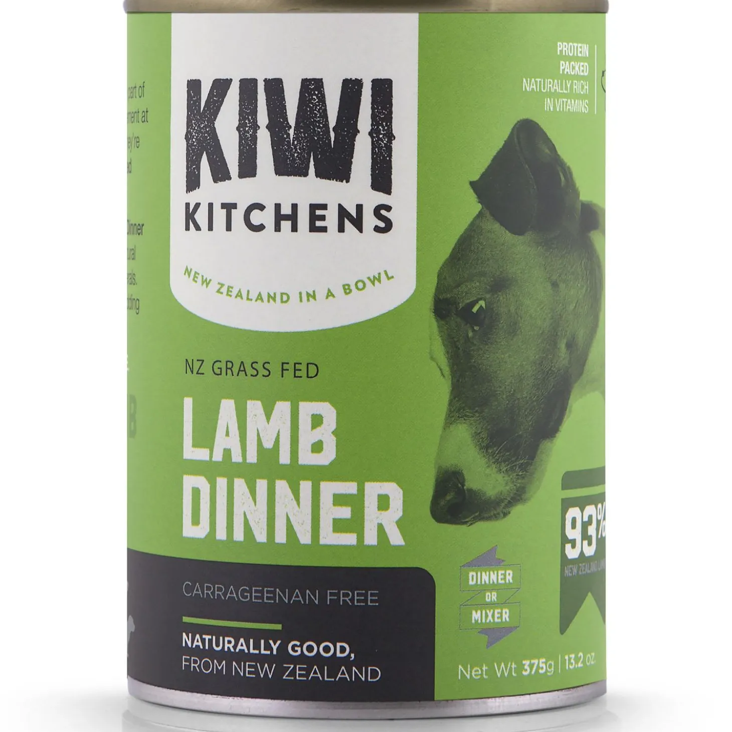 Kiwi Kitchens Grass Fed Lamb Dinner Dog Food is highly nutritious. This incredibly tasty, cooked, 93% high-meat diet is formulated to be fed to your carnivore as their sole complete and balanced meal or mixed with other Kiwi Kitchens can formulas to expand the natural nutrients other proteins offer. The lambs that are used are free to roam and graze the green New Zealand pastures in a stress-free environment all year long, resulting in a can filled with healthy lean protein to support muscle growth and overall health. Grass-Fed Lamb contains up to 3 times more Omega-3 Fatty Acids to support healthy skin and coat than Grain-Fed Lambs. This complete and balanced whole food diet is naturally rich in vitamins and minerals.