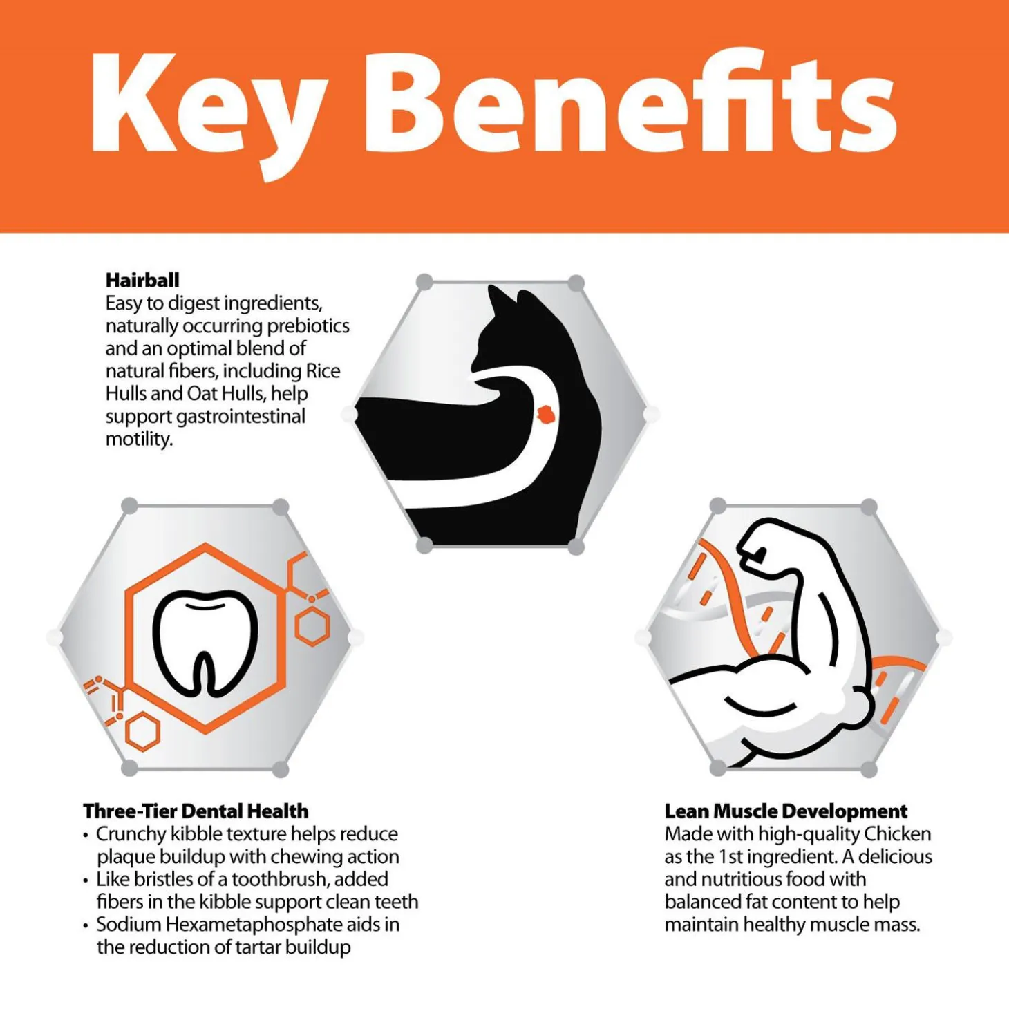 Performatrin Prime Hairball Chicken & Rice Formula Adult Cat Food is formulated to support healthy digestion and overall health. This recipe is formulated for adult cats that require a high-fiber food to help support gastrointestinal motility and maintain a healthy digestive system with easy-to-digest ingredients, naturally occurring prebiotics such as rice hulls that are also high in fiber.