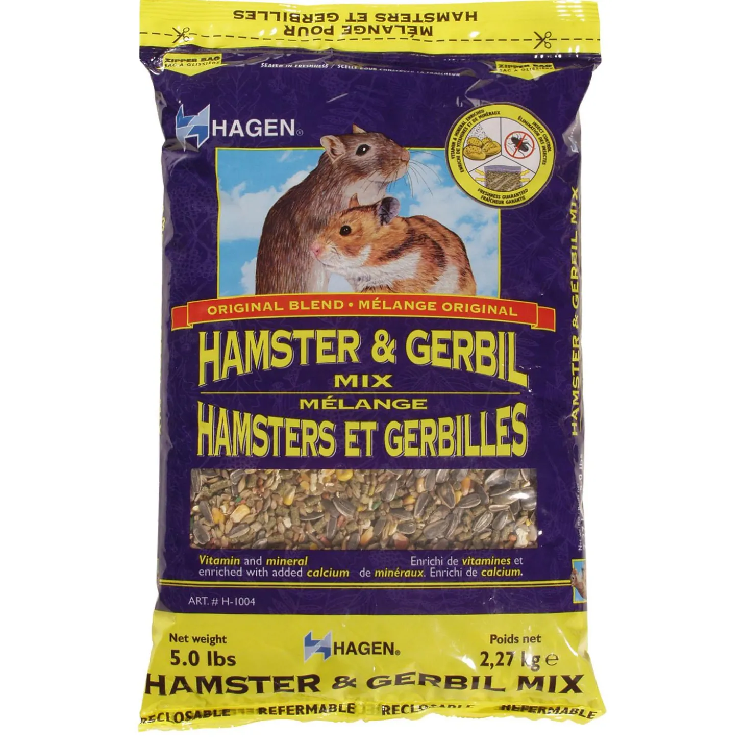 Hagen Hamster & Gerbil Original Blend Mix Small Animal Food provides a tasty selection of the finest seeds and nuts that hamsters and gerbils would forage in the wild. Small animals get all the benefits of freely eating the delicious food they love, plus they get all the nutrients they need for a healthy and long life. Hamster & Gerbil vitamin and mineral mix contains the appropriate amounts of protein, fat, fibre, vitamins and minerals to help keep small pets in excellent condition.