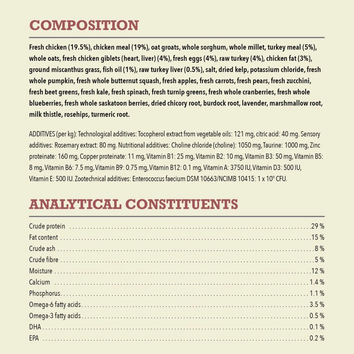 *ACANA’s free-run chickens and turkeys are not housed in cages and are able to move in a barn without outdoor access. ** ACANA also adds essential vitamins and minerals, natural preservatives and probiotics.