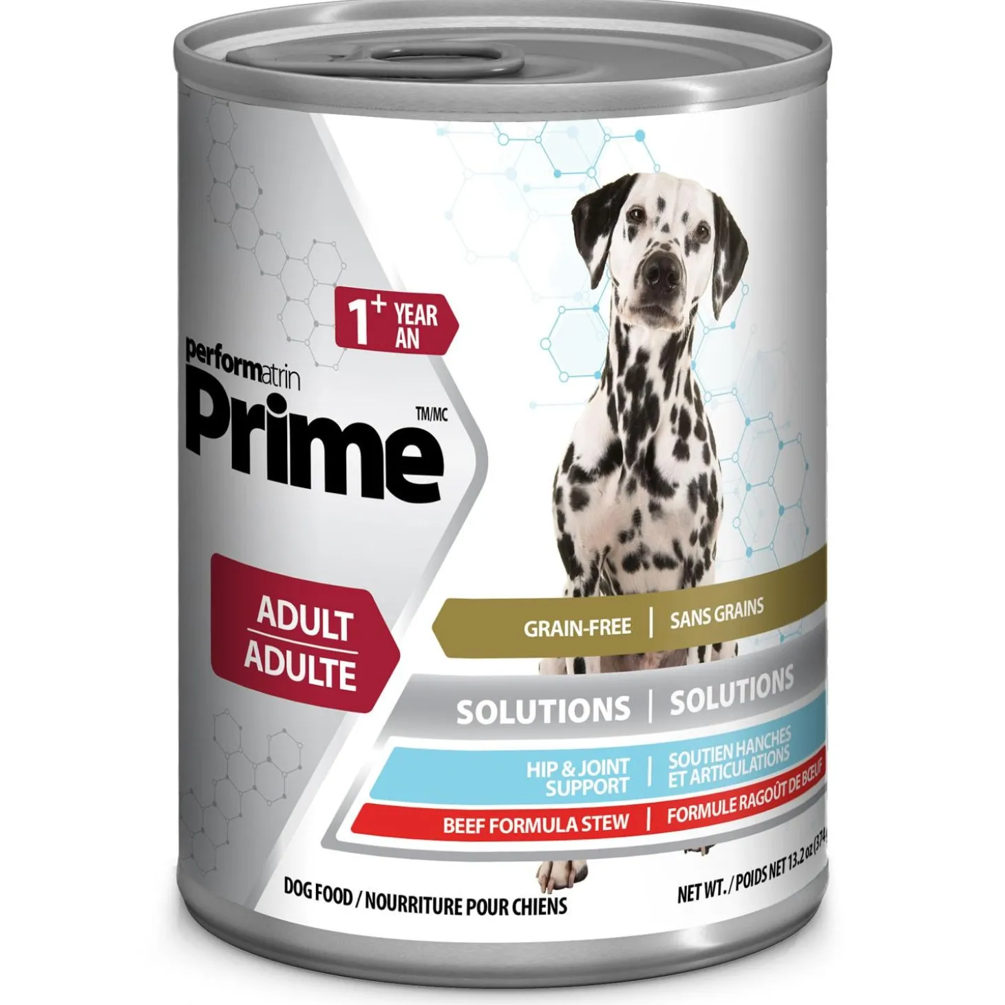 Performatrin Prime Healthy Hip & Joint Support Beef Formula Stew Adult Dog Food is a grain-free targeted formulation helps support hip and joint health from Omega-3 fatty acids to help decrease joint inflation, and a natural source of Glucosamine and Chondroitin from chicken. Together with beef, that helps support lean muscle mass, this recipe is formulated to support overall health & wellness for your dog’s adult years.
