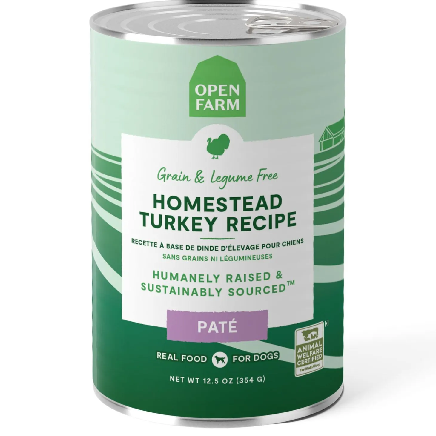 Open Farm Homestead Turkey Pate Recipe Dog Food features Animal Welfare Certified and Humanely Raised turkey. Raised without antibiotics or growth hormones. No artificial flavours or preservatives. 100% traceable ingredients.