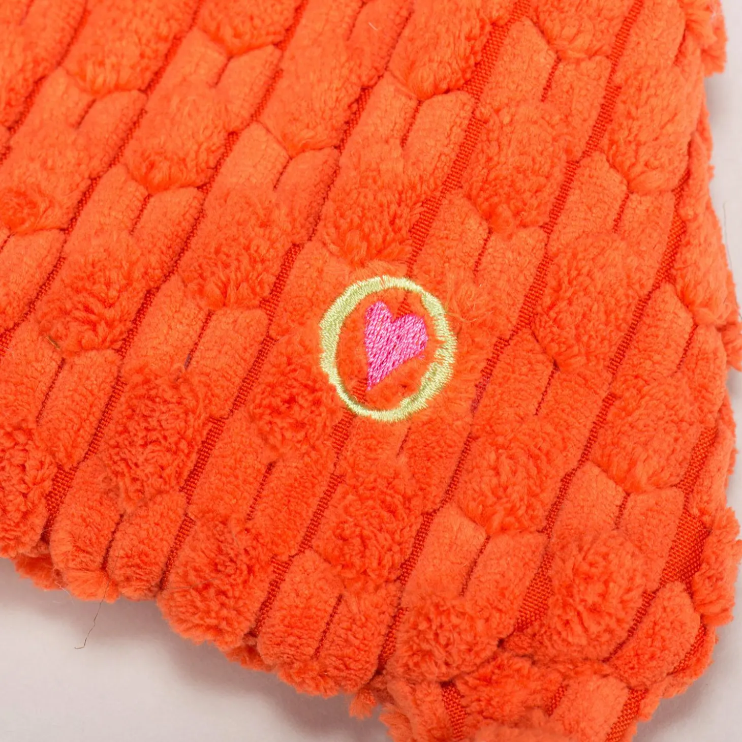 - Soft and Cuddly: His minimal stuffing and soft corduroy fabric make him the perfect cuddle buddy.