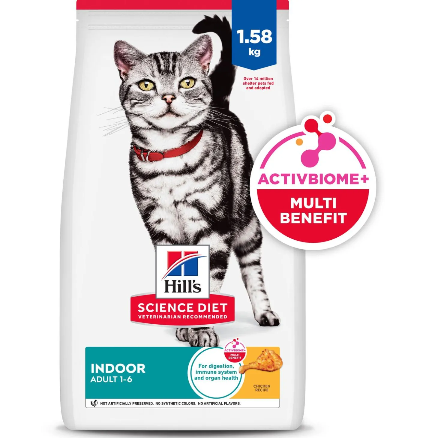 Hill’s Science Diet Indoor Chicken Recipe Adult Cat Food is specially formulated to fuel the energy needs of cats with an indoor lifestyle during the prime of their life. During your cat’s adult years, you want to feed nutrition that supports everyday health and digestion. Made for grown cats, this pet food made with natural ingredients uses DHA from fish oil to support brain health and eye development. Balanced minerals promote strong teeth and bones, while natural fibres promote healthy digestion for young cats, and easier litter box clean-up for you.