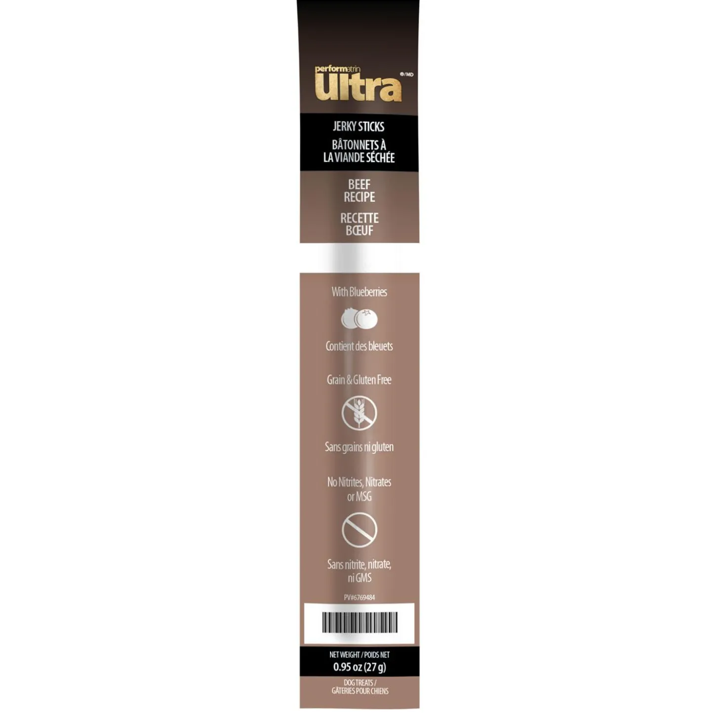 Performatrin Ultra Jerky Sticks Beef Recipe Dog Treats are made from 100% natural ingredients. These treats are packed with omega fatty acids & antioxidant nutrients.