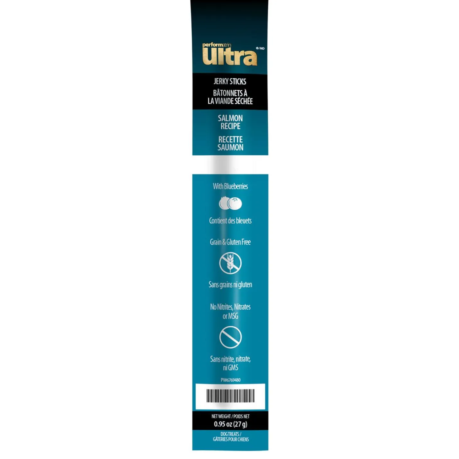 Performatrin Ultra Jerky Sticks Salmon Recipe Dog Treats are made with 100% natural ingredients. These treats are packed with omega fatty acids & antioxidant rich nutrients.