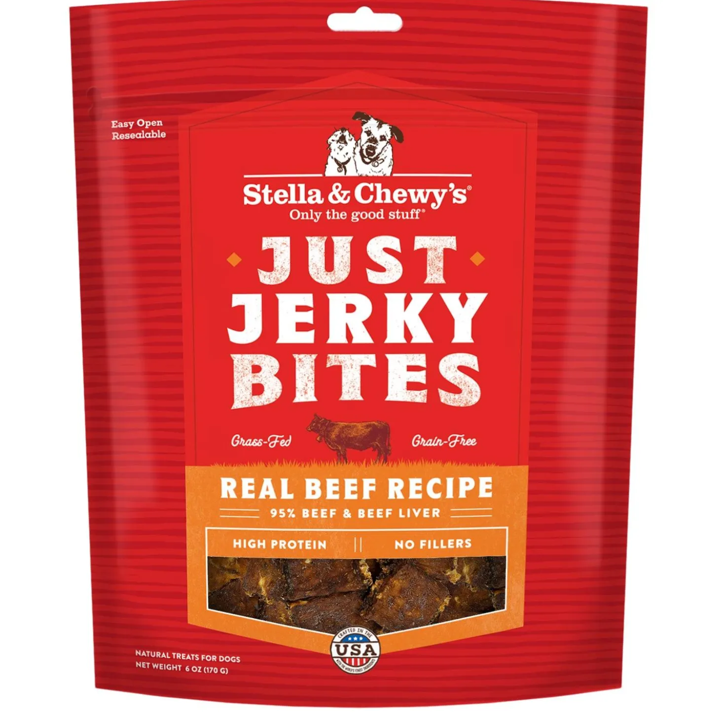 Stella & Chewy’s Just Jerky Bites Beef Recipe are tender & tasty jerky bites made to be nutritious and delicious, with 95% meat and no fillers – they’re packed with protein and a craveable big meaty taste. These treats will satisfy the pickiest of pups!