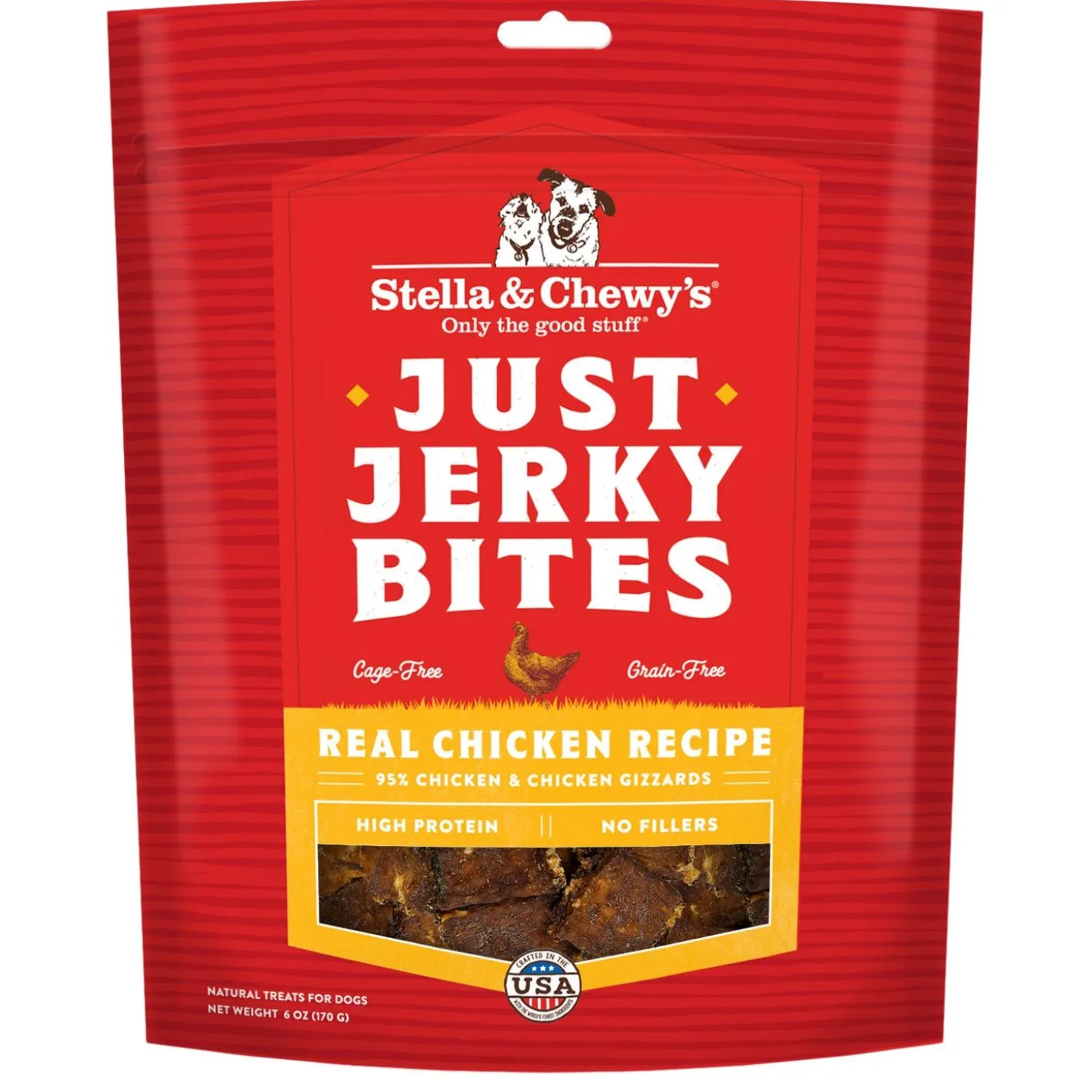 Stella & Chewy’s Just Jerky Bites Chicken Recipe are tender & tasty jerky bites made to be nutritious and delicious, with 95% meat and no fillers – they’re packed with protein and a craveable big meaty taste. These treats will satisfy the pickiest of pups!