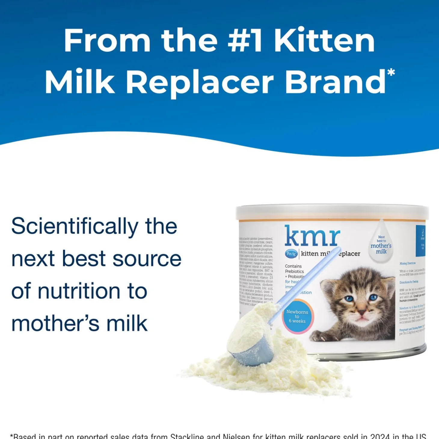 - Kitten Milk Replacement: scientifically the next best to mother’s milk, KMR provides all the nutritional elements necessary for kittens, newborn to six weeks old