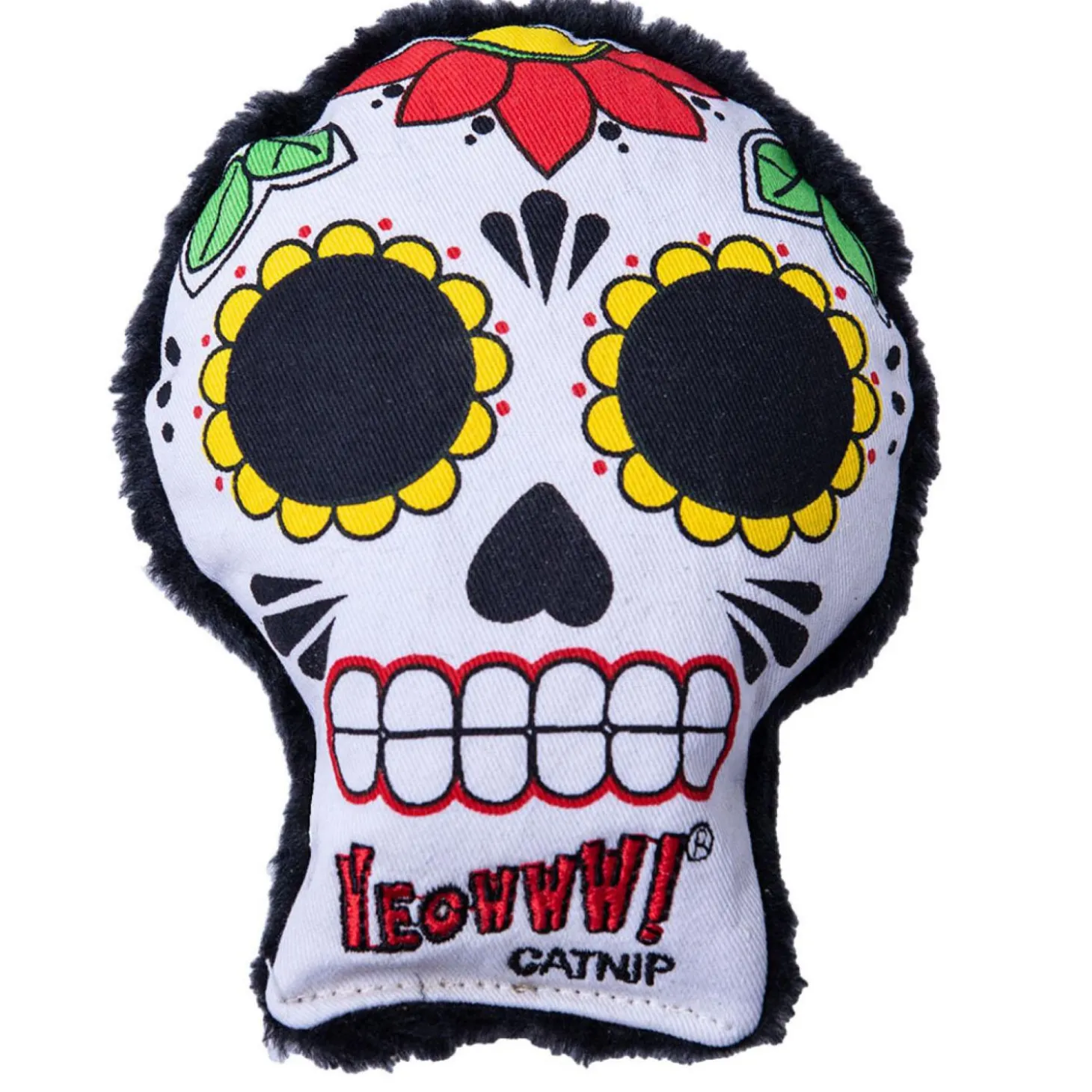 Yeowww! La CAT-rina Catnip Cat Toy is based on the design of calaveras, the decorative skulls emblematic of Dia de los Muertos. La CAT-rina is an elegant and colorful feast for kitty’s senses. The face is covered with durable cotton twill, perfect for withstanding celebratory shenanigans involving teeth and claws. Meanwhile, the back is fuzzy and soft, providing your kitty with a place to rest their head when playtime is over. Packed with more than 1.5 ounces of Yeowww!’s organically grown catnip, La CAT-rina is big enough to satisfy the cravings of any feline friend.