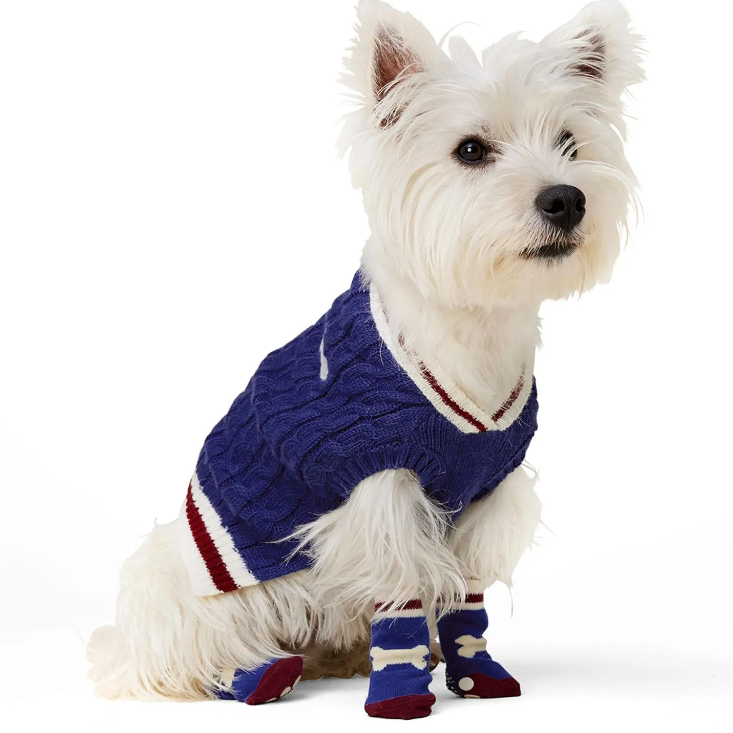 Bailey & Bella Lacrosse Knit Navy Sweater will have your furry friend looking sporty and chic. Pull-on design makes this sweater easy to put on and take off your furry friend.
