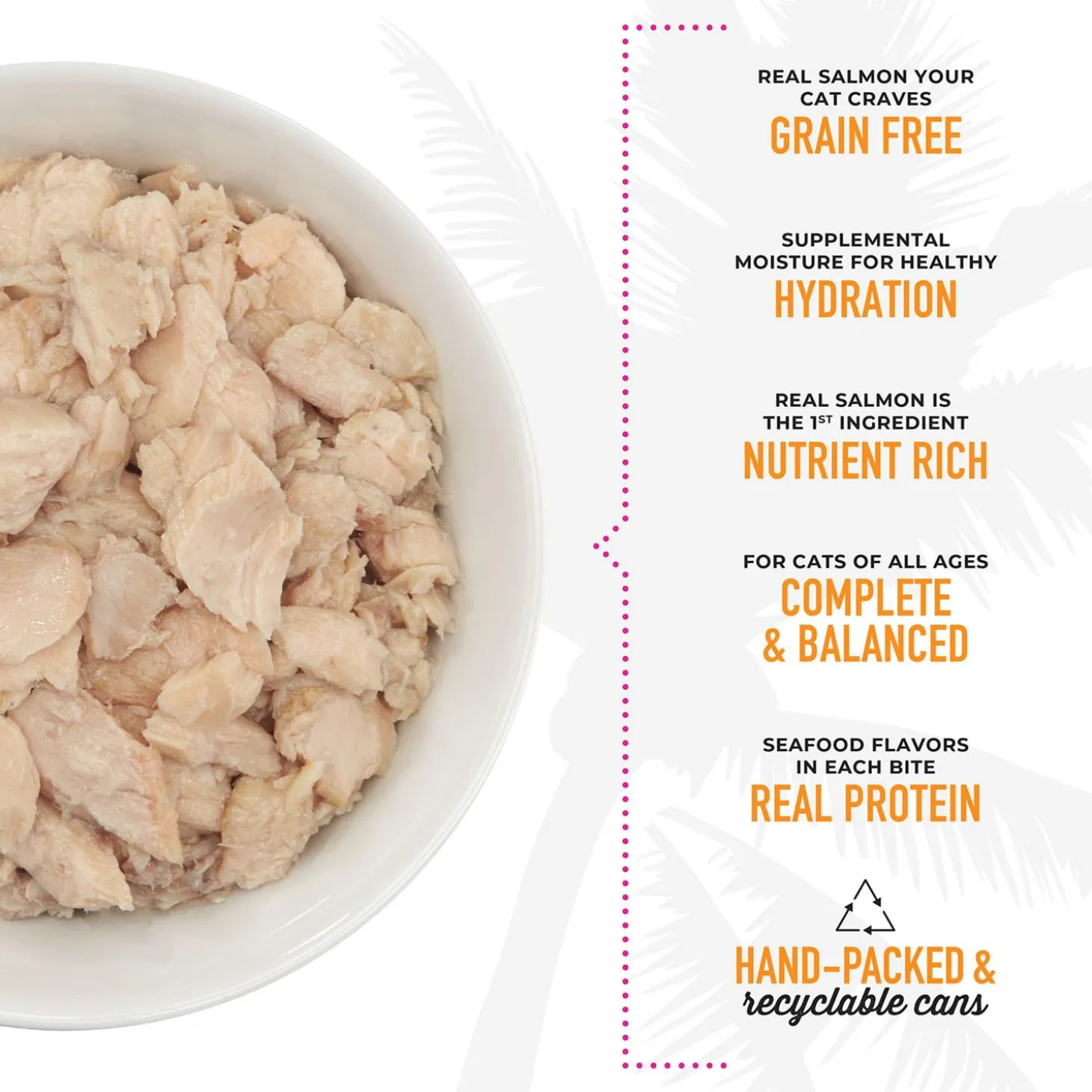 Tiki Cat Luau Wild Salmon Recipe in Salmon Consomme Cat Food features a succulent combination of tender flaked fish in a savoury broth.