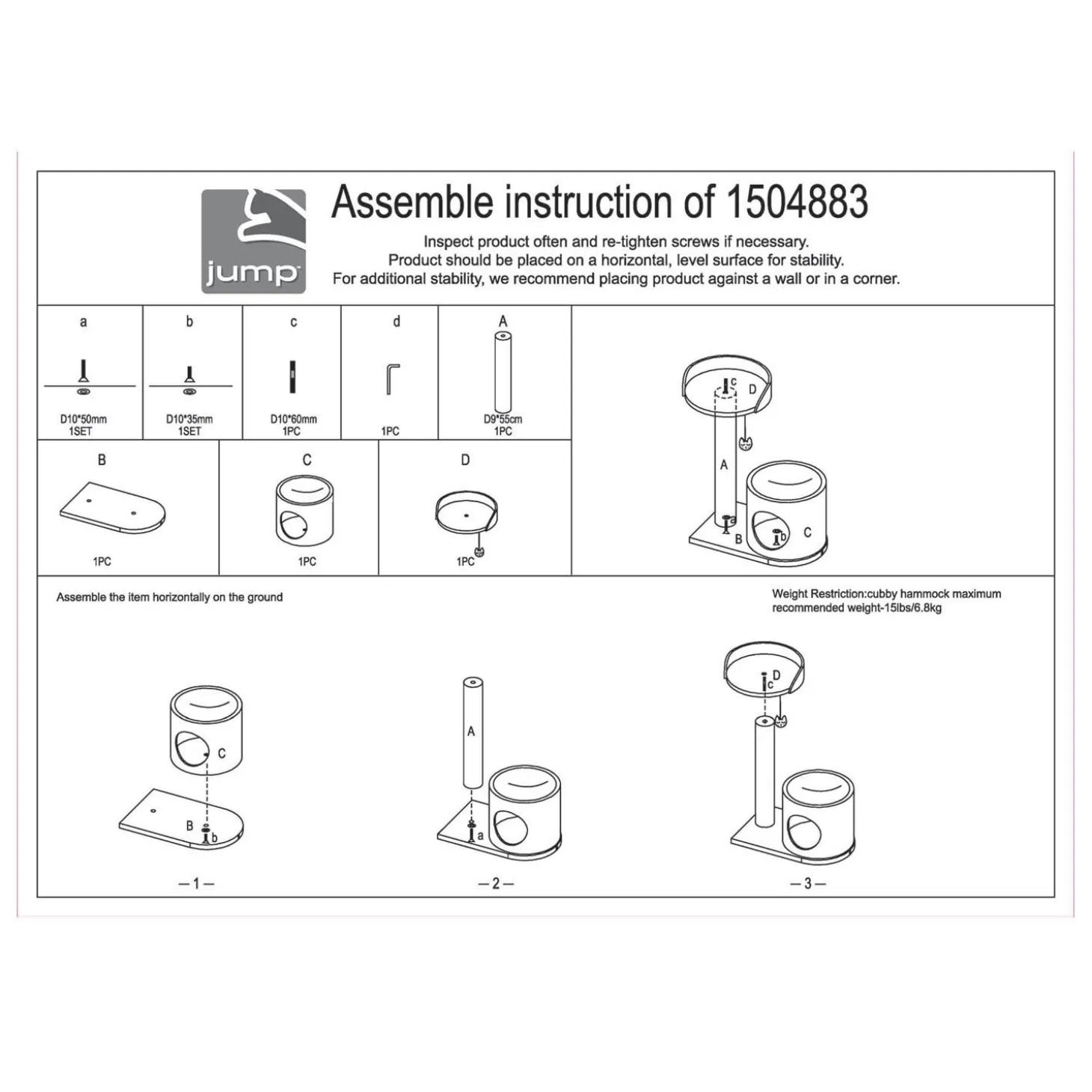 Jump Maggie Hammock Condo Cat Tree is the perfect one-stop spot for your cat to satisfy a wide variety of their natural behaviours, instincts, and needs. The cozy cubby roof doubles as a hammock, giving your kitty the option of a nap inside or out. The comfortable perch atop a recycled paper-wrapped post lets cats embrace their natural instincts to stretch, scratch and lounge. Cute kitty-shaped hanging toy adds extra fun and stimulation making this the ultimate play-zone, perfect for any home!