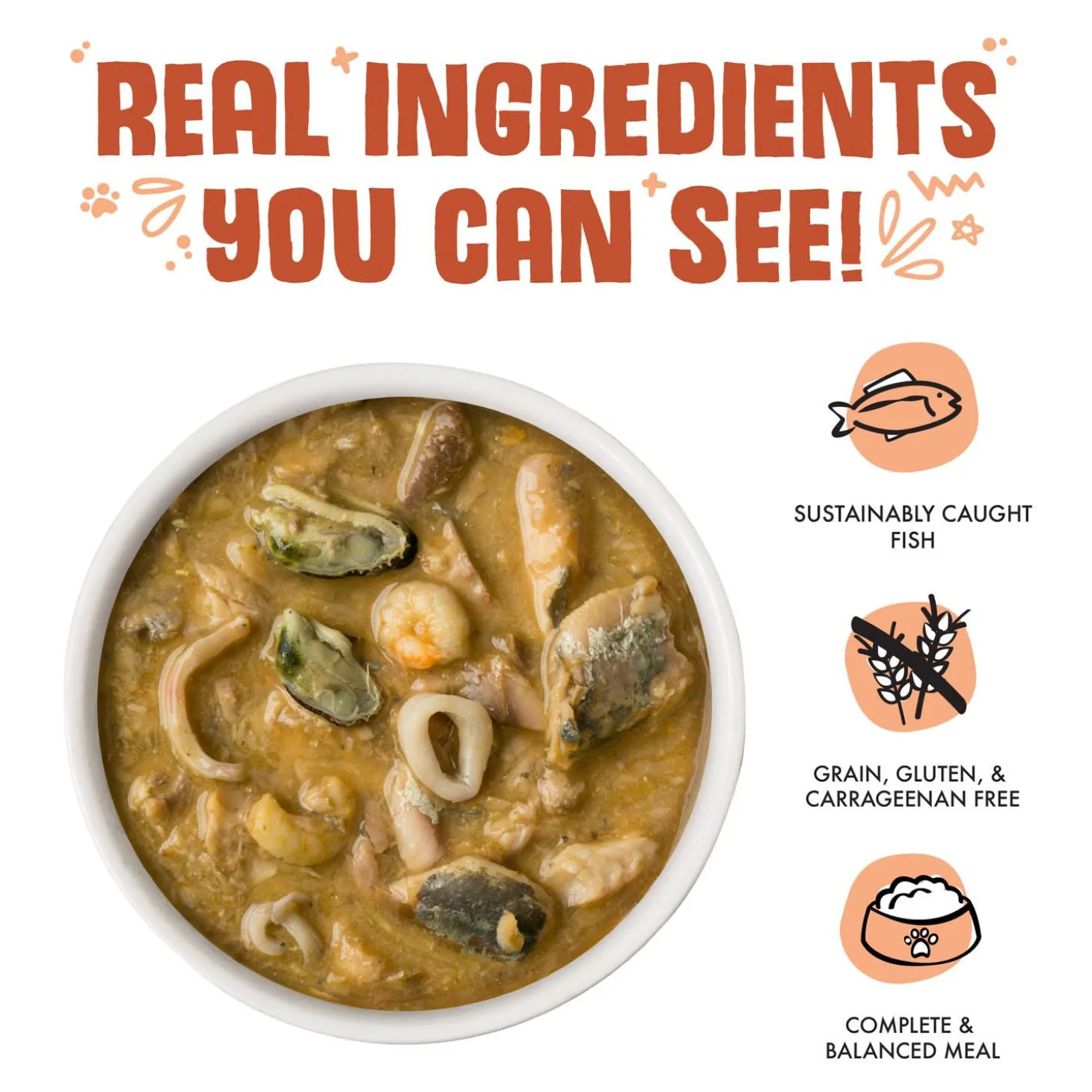 - Features mackerel, shrimp, and squid, served in a rich gravy, providing the high-quality protein cats need to thrive