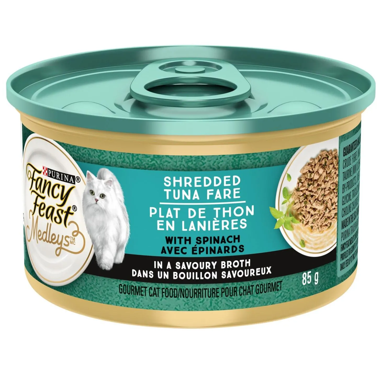 Fancy Feast Medleys Shredded Tuna Fare Adult Cat Food is a gourmet cat food recipe uses that exceptional ingredients to create delicious combinations inspired by dishes throughout the world. Fancy Feast Medleys canned cat food has essential vitamins and minerals to support your cat’s health and wellness. Watch your cat scamper toward the sound of the can opening whenever you serve this high-quality cat food!