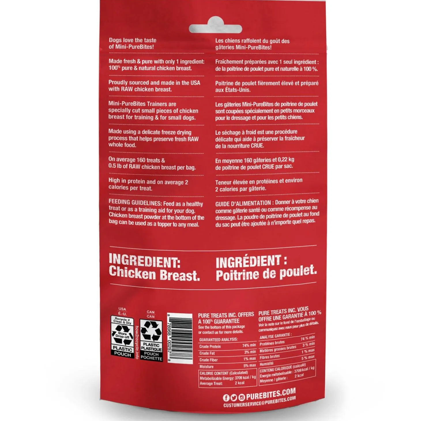 - Made with only 1 simple human grade ingredient: 100% pure chicken breast; sourced and freeze dried in the USA, then packaged and perfected in our very own Canadian kitchen; a great high-value treat, topper, or training aid for your dog