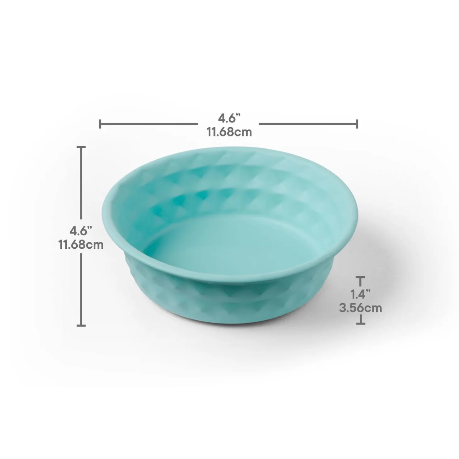 Essentials Misty Teal Stainless Steel Bowl brings style and convenience to your kitty’s mealtime. This sleek, non-porous and durable stainless-steel bowl is perfect for either food or water, and the beautiful misty teal colour will complement any home decor. The silicone boots prevent slipping – no more worrying about run-away meals! Bowl is dishwasher safe, making cleaning quick and easy. Both you and your cat will love the Essentials Misty Teal Stainless Steel Cat Bowl!