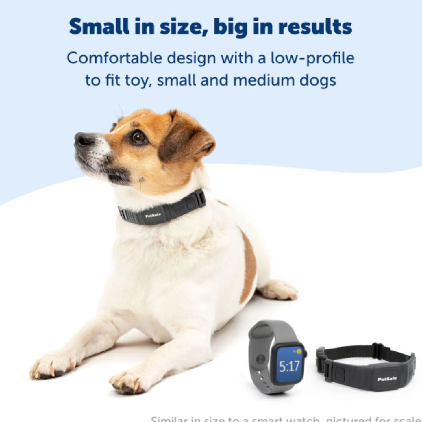 - Low-profile collar that’s about the size of your favorite smartwatch