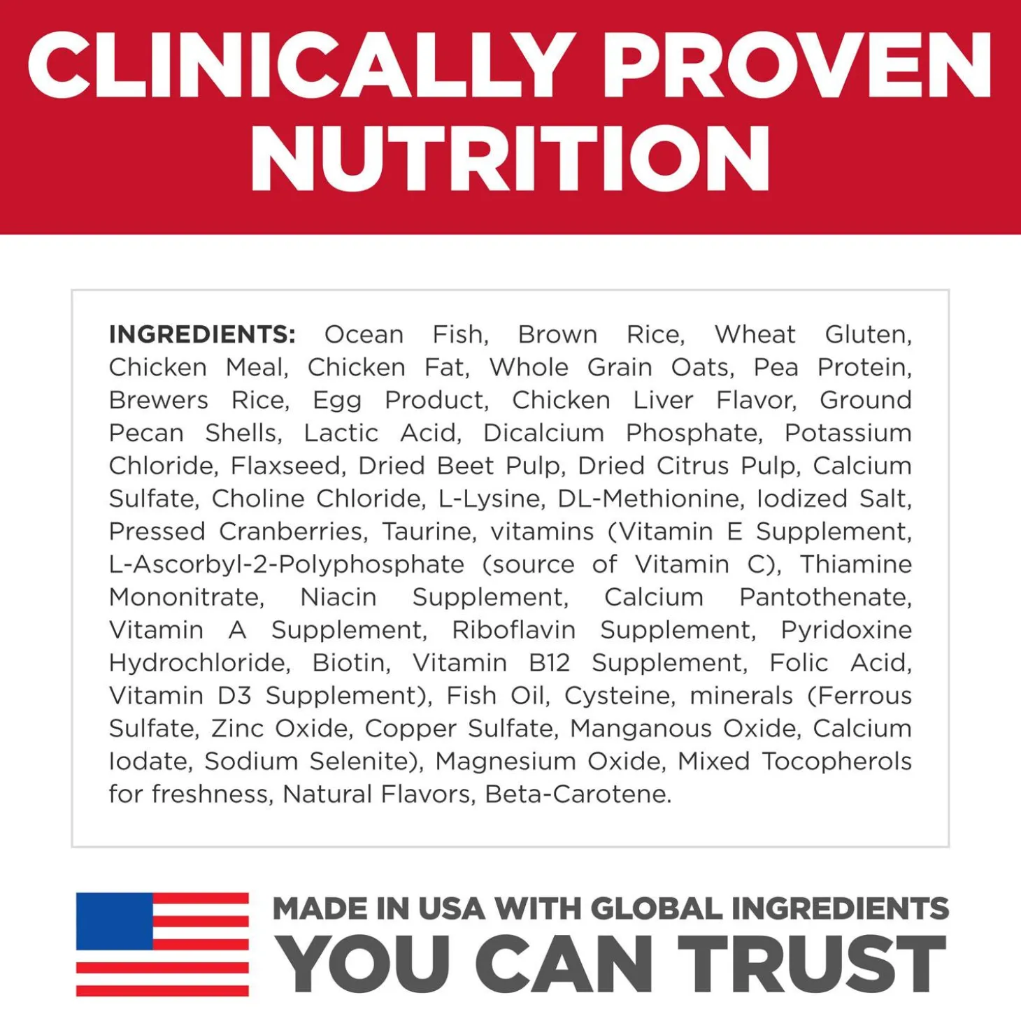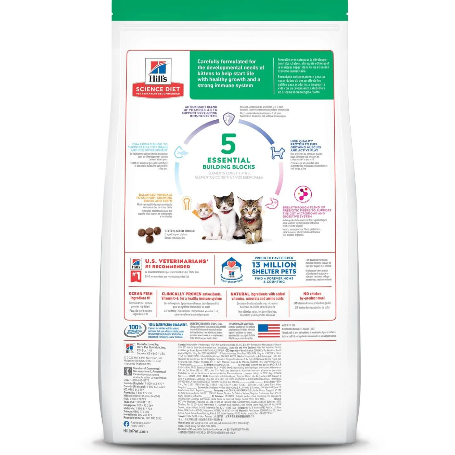 Hill’s Science Diet Ocean Fish & Brown Rice Recipe Kitten Cat Food provides your new friend premium nutrition that can keep up with their active lifestyle. This kitten food has been specially formulated for the developmental needs of kittens to help start life with healthy growth and a strong immune system. Packed with DHA from fish oil for healthy eye & brain development for kittens, this cat food is made with natural ingredients that provide high-quality protein to help support your young cat’s muscle growth and development. A balanced set of minerals promote strong bones and strong teeth, to keep your kitten healthy well throughout the first year of life.