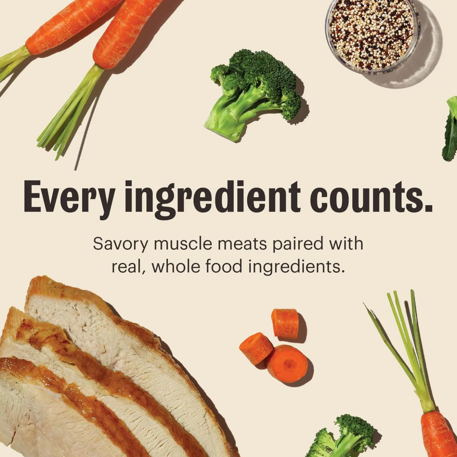 The Honest Kitchen One Pot Stews Tender Turkey Stew Dog Food tempts even the pickiest pups with this chef-crafted, human grade stew that’s been kettle-cooked to lock in flavour. This chunky, hearty stew with cage free turkey, quinoa, carrots, broccoli and a hint of sage can be served as a complete meal or healthy mix-in that helps you boost your pup’s health and happiness from the inside out.
