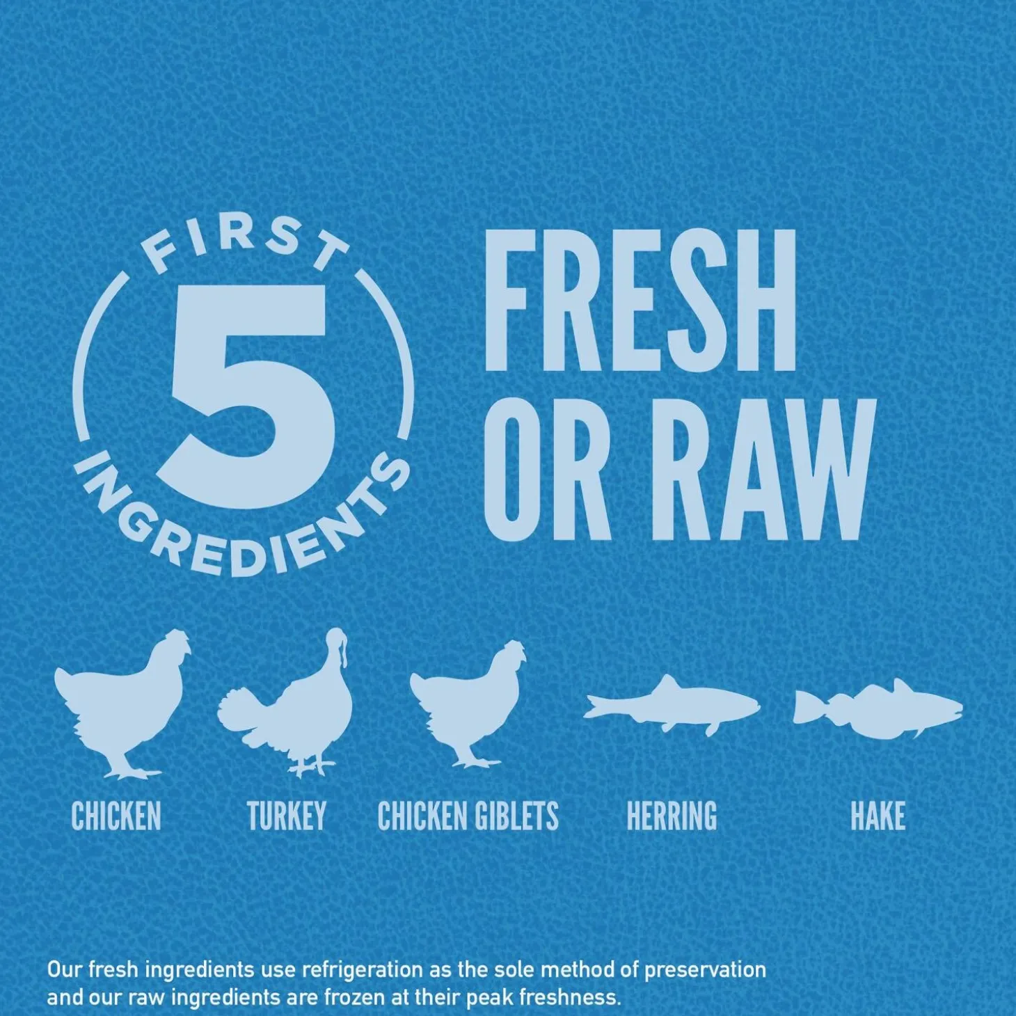 - Fresh ingredients use refrigeration as the sole method of preservation. Raw ingredients are frozen at the peak of freshness to preserve nutrients