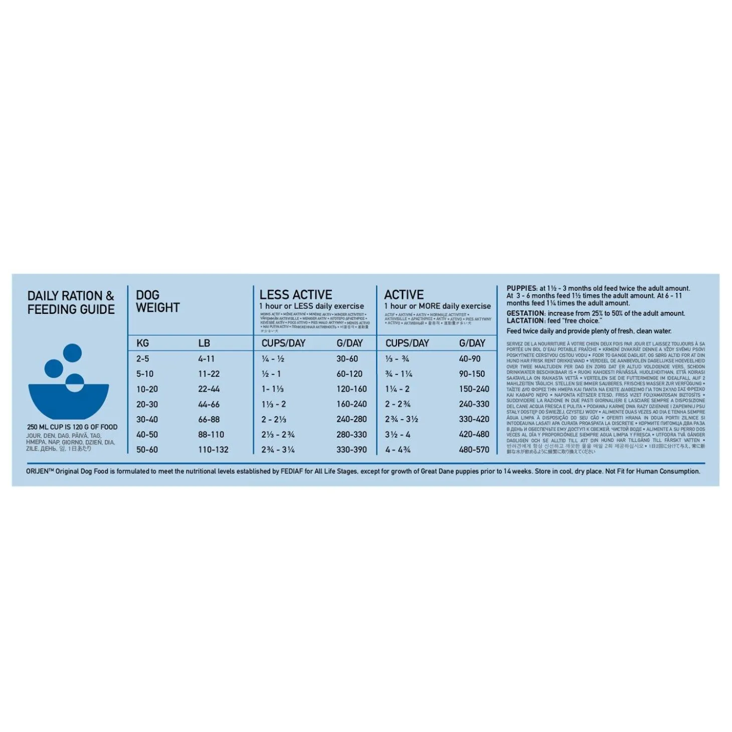 ORIJEN Original Dog Food is perfect for your dog because like their ancestor, the grey wolf, all dogs are meant to eat a diet rich and varied in whole animal ingredients. This food is made with meat, organs, cartilage, and bone from free-run chicken and turkey, wild-caught fish, and cage-free eggs that are delivered to Orijen’s kitchen. Two-thirds of the animal ingredients are fresh or raw, for a concentrated source of protein. With richly nourishing protein and infusions of freeze-dried liver, this recipe nourishes your dog as nature intended while offering them a flavour that they’ll love.