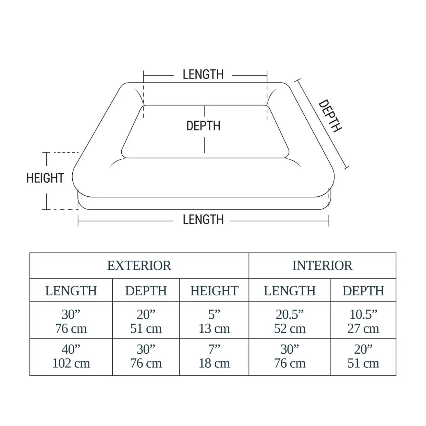 - Outer Dimension: 102 cm L x 76 cm W x 18 cm H (40″ L x 30″ W x 7″ H)