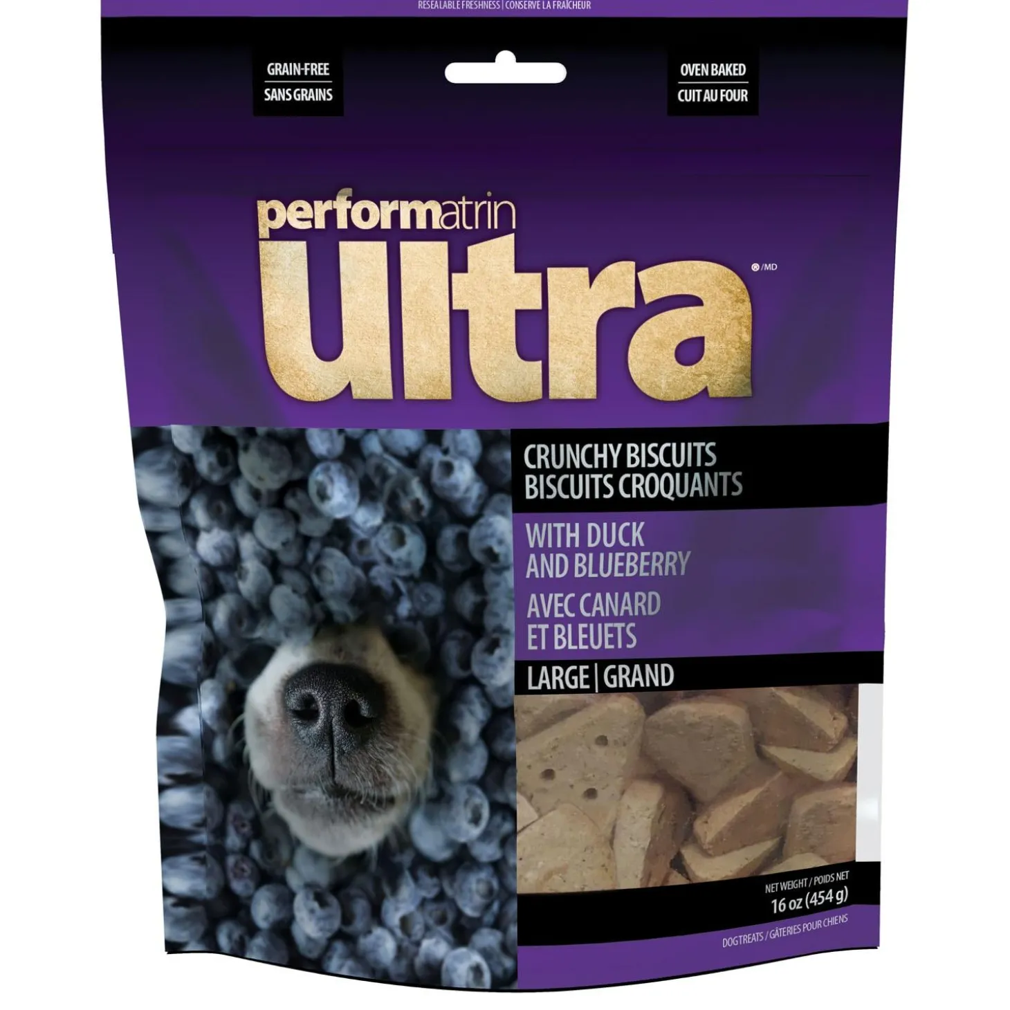 Performatrin Ultra Oven Baked Duck & Blueberry Large Dog Treats combine a wide variety of healthy wholefood ingredients to deliver great taste. Just the right size to complement your dog’s regular diet and available in an irresistible variety of oven-baked delectable flavours. Feel good about treating your dog with Performatrin Ultra Grain-Free Treats.