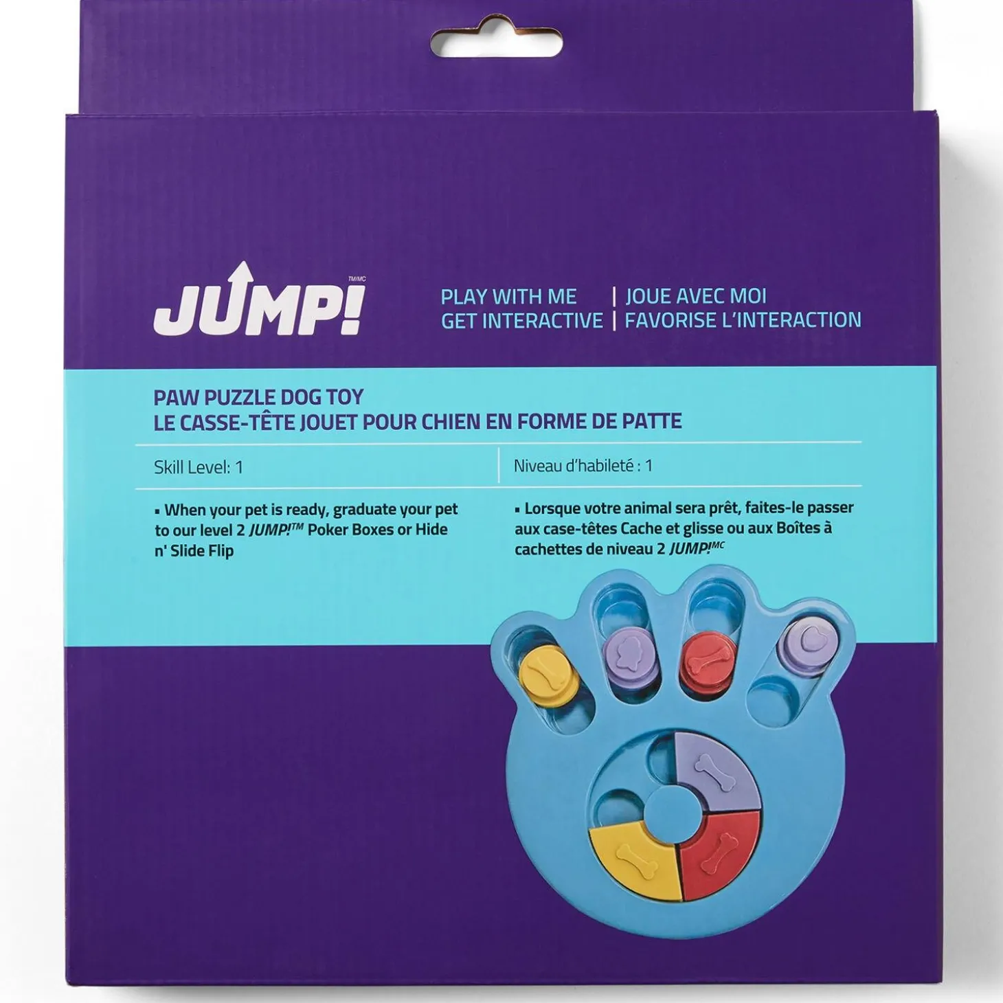 JUMP! Paw Puzzle Dog Toy is a motivating and rewarding way for your pup to have their next snack or treat! Hide tasty morsels in the built-in compartments and challenge your dog to use their foraging instincts to reveal their reward.