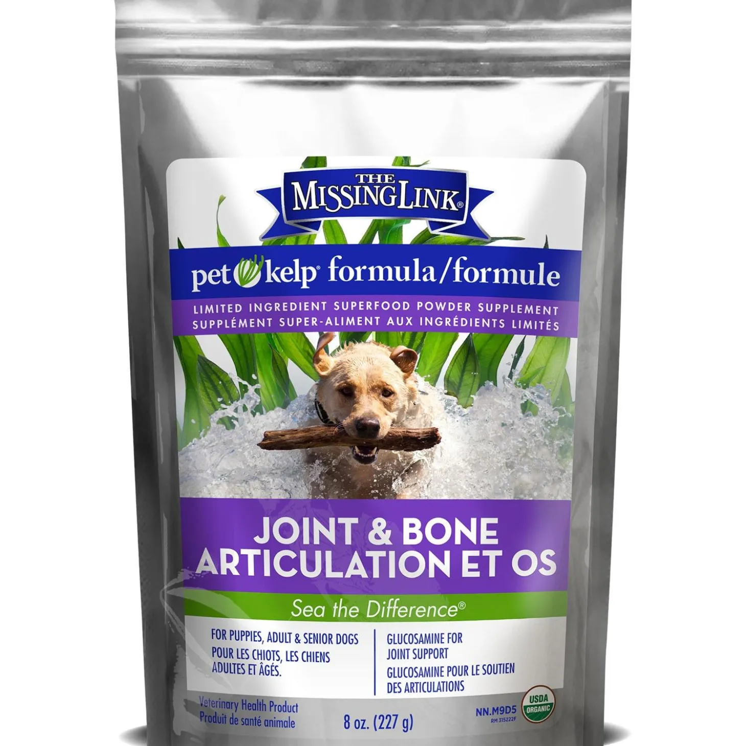 The Missing Link Pet Kelp Formula Joint & Bone Limited Ingredient Superfood Dog Supplement adds a daily helping of glucosamine to your dog’s bowl to help build strong bones and support joint health. With the natural goodness of organic kelp and flaxseed, The Missing Link Pet Kelp Formula Joint & Bone blend adds the essential vitamins and minerals to support your dog’s overall health, hardiness and happiness too with a simple sprinkle of this limited-ingredient superfood supplement.