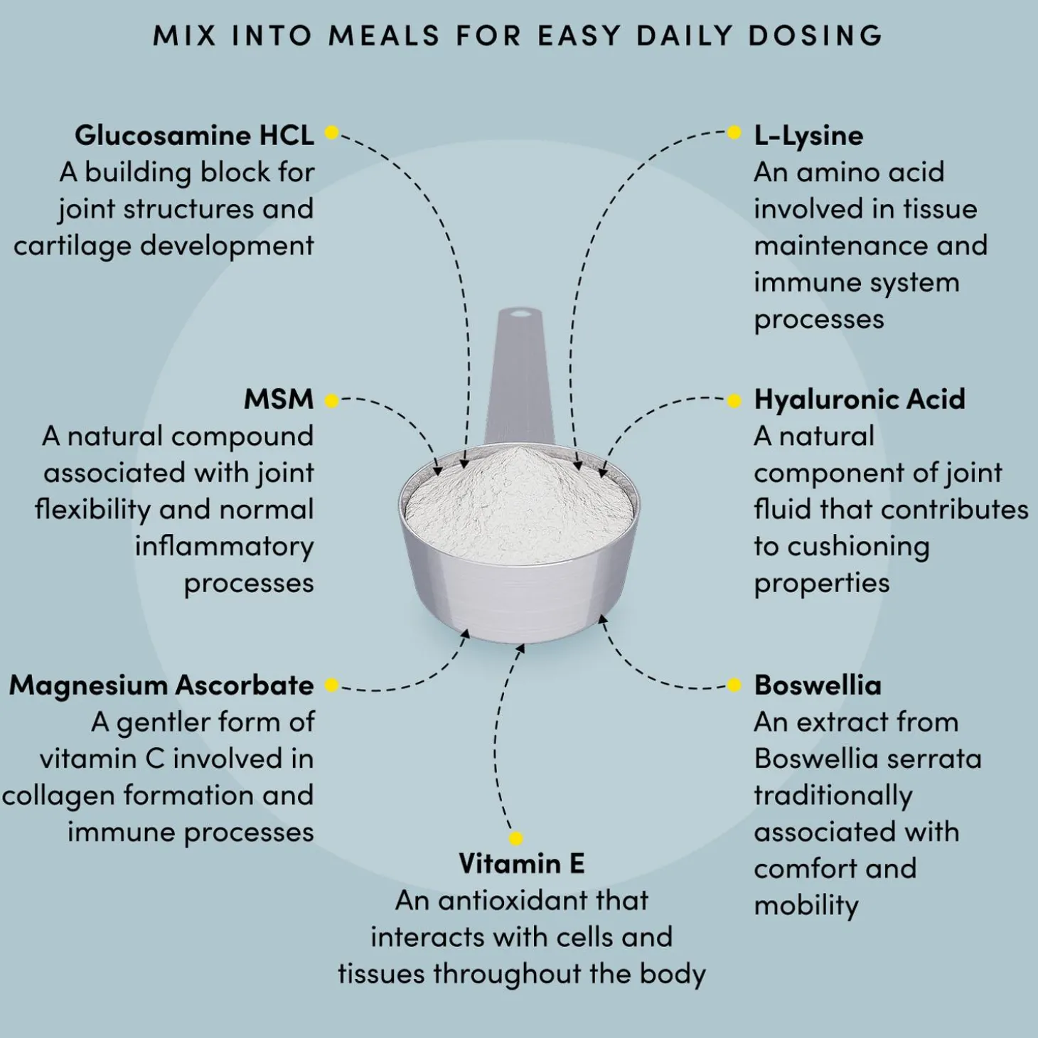 - For Post-Surgery Recovery – Support healing with targeted ingredients – L-Lysine for tissue health, MSM for flexibility, and magnesium ascorbate for collagen support