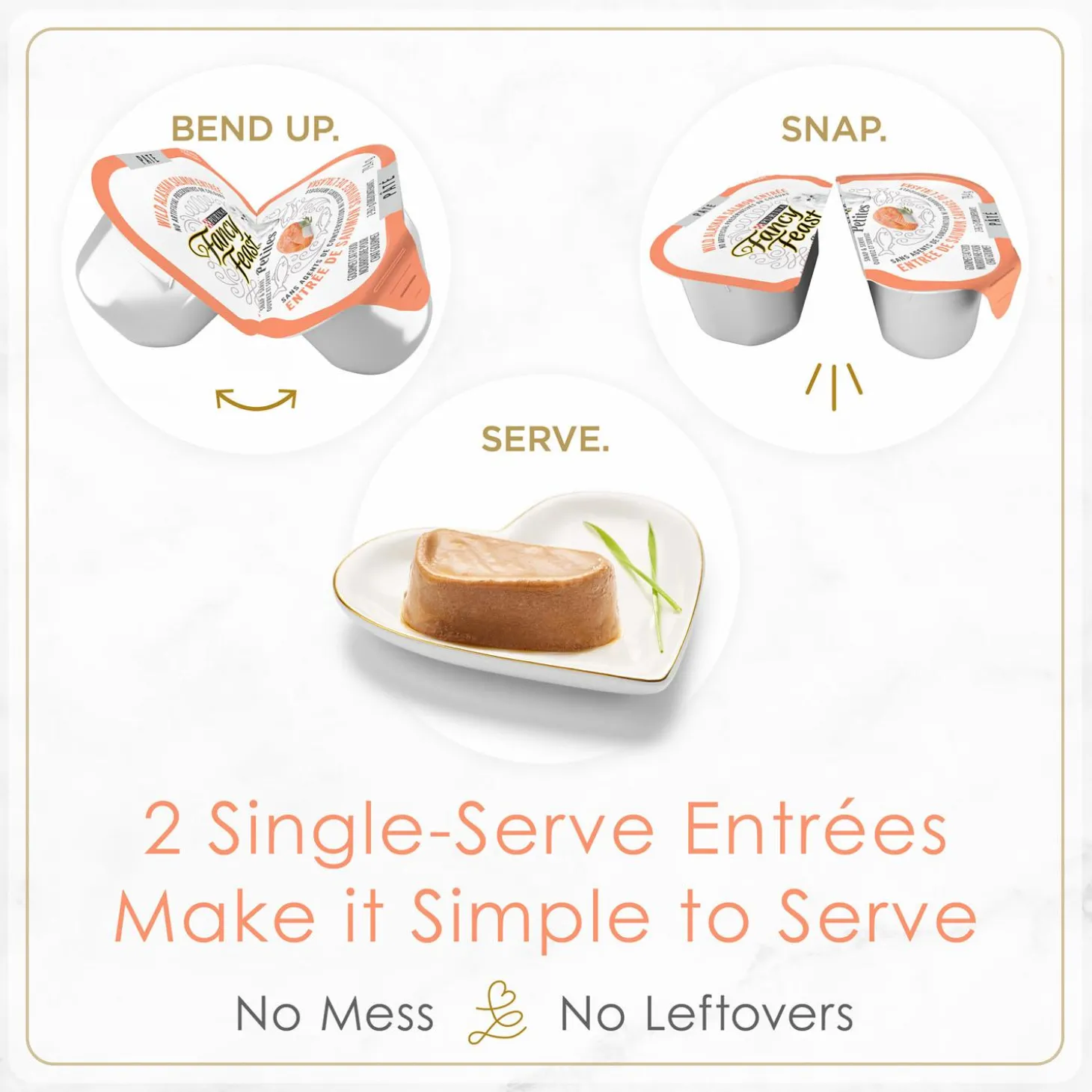 Fancy Feast Petites Wild Alaskan Salmon Entree Adult Cat Food is crafted with no artificial preservatives and colours, and combines the exceptional Fancy Feast taste with convenient, single serve packaging for a gourmet feeding experience every time. Fancy Feast Petites make it easier to give your cat her favourite food, in the right amount. Simply snap off the individual serving, peel the lid, and let her enjoy flavours she’ll adore. No mess. No leftovers. Just love in a snap.