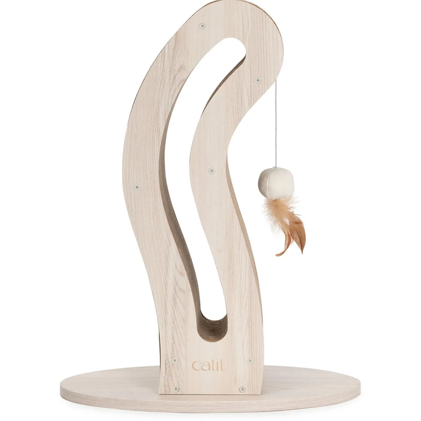 Catit PIXI Cat Tail Scratcher combines neutral colours and soft feline features. Ideal for your cat to unleash their claws on, preserving your home furniture, this scratcher is made with high-quality replaceable cardboard parts, a modern oak-look finish and a stable base that is equipped with a ball toy with feather.