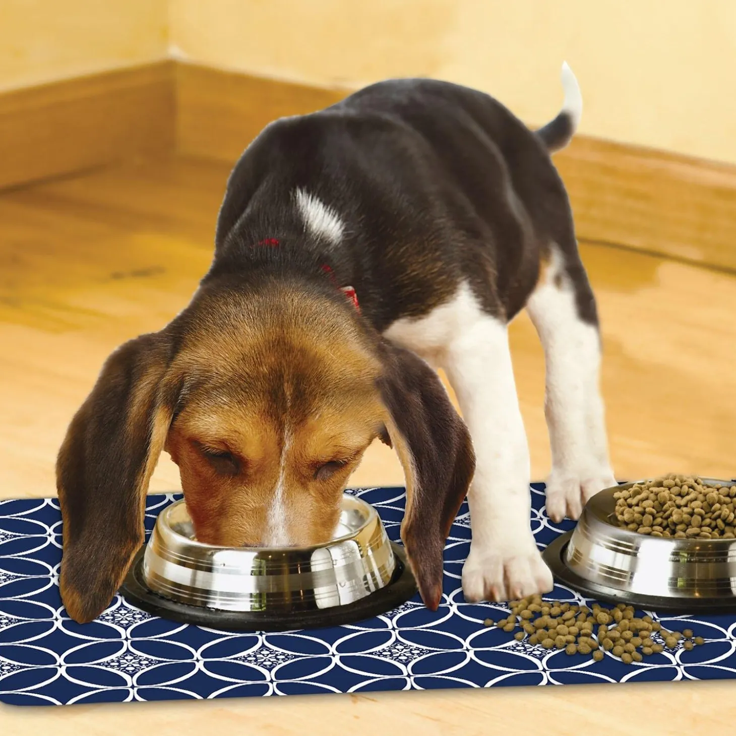 Spruce up your pet’s feeding station and protect your floor with a Drymate Placemat. The absorbent top layer contains spills while the waterproof backing prevents them from leaking through to your floor. A slip-resistant backing keeps the mat in place, reducing the chance of tipped bowls during a frenzied feeding.