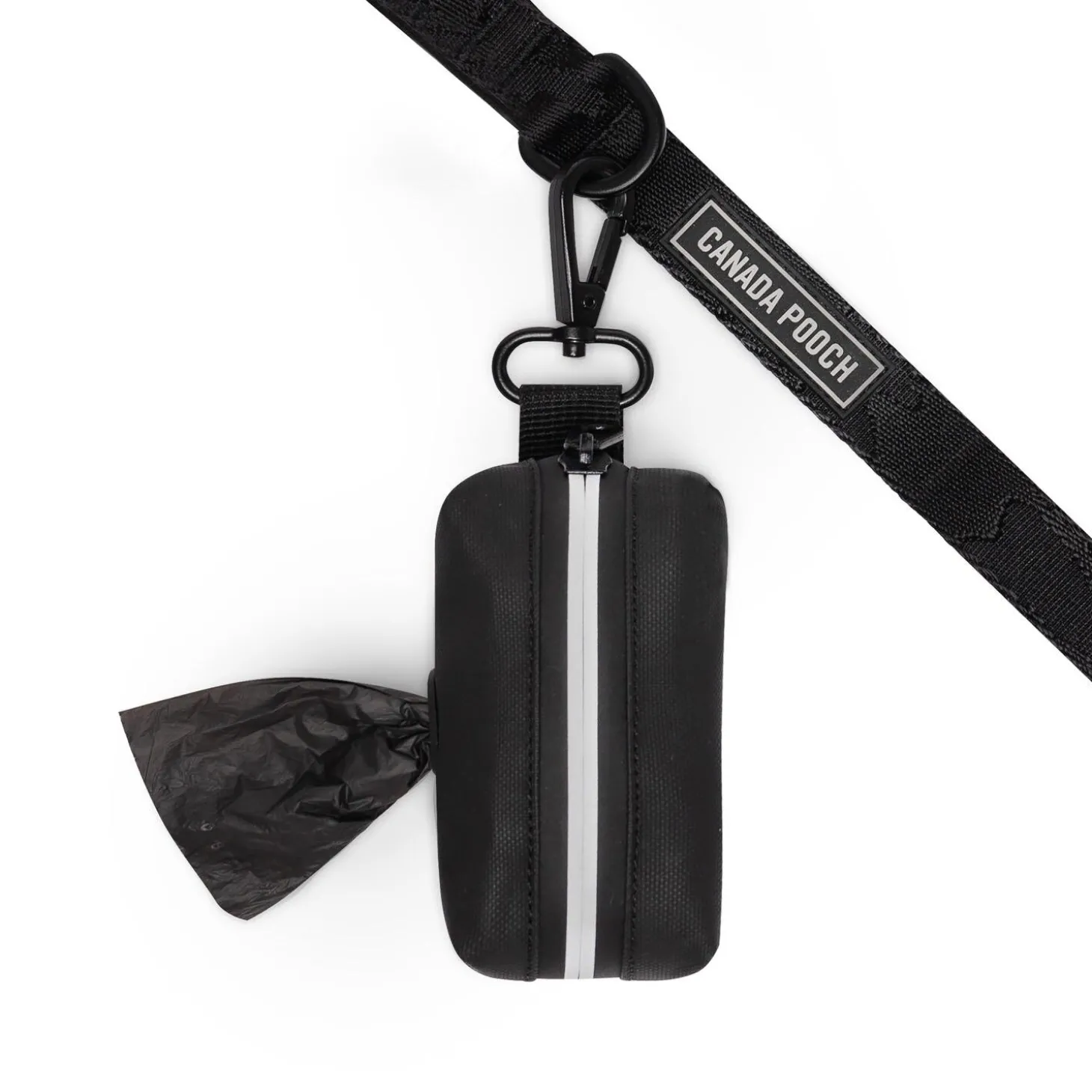 Canada Pooch Poop Bag Black Dispenser conveniently clips to your leash or dog walking belt for easy access to poop bags.