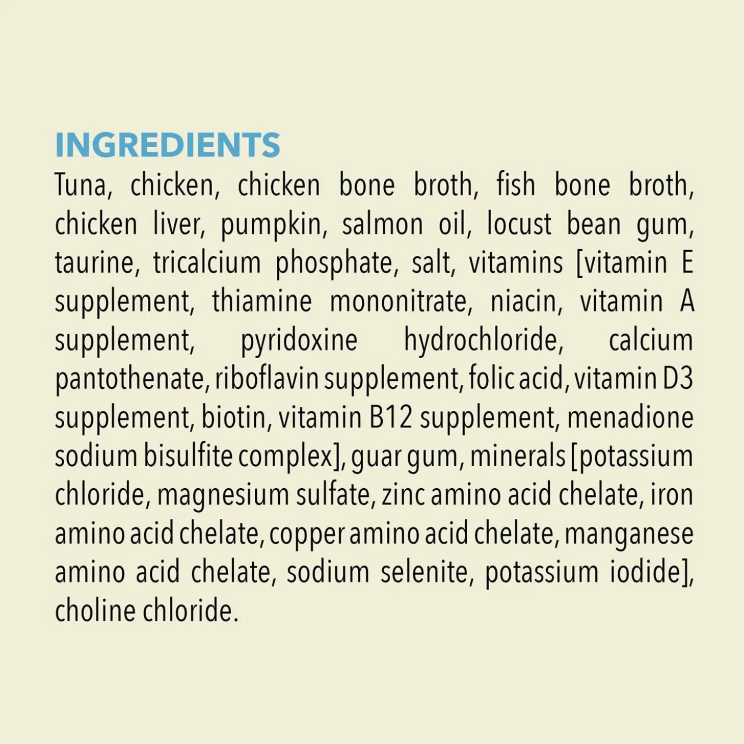 - The first 6 ingredients are raw tuna, chicken, chicken bone broth, fish bone broth and chicken liver.
