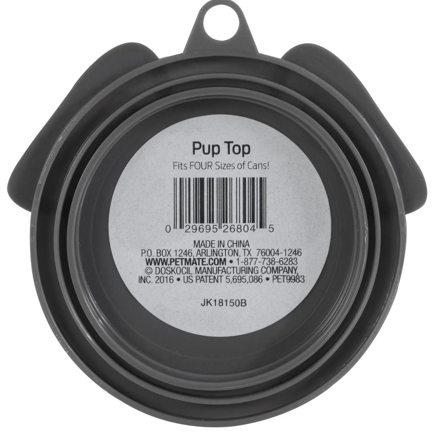 Petmate Pup Top Assorted Colours Food Can Cover will help keep your fridge smelling fresh, your kitchen clear of clutter and never waste expensive canned pet food leftovers again. The Pup Top can cover is a colourful and durable plastic lid designed to keep food remaining in opened cans fresh for your pets next meal. Simply pull up on the ears to remove from can. Ships in random colours.