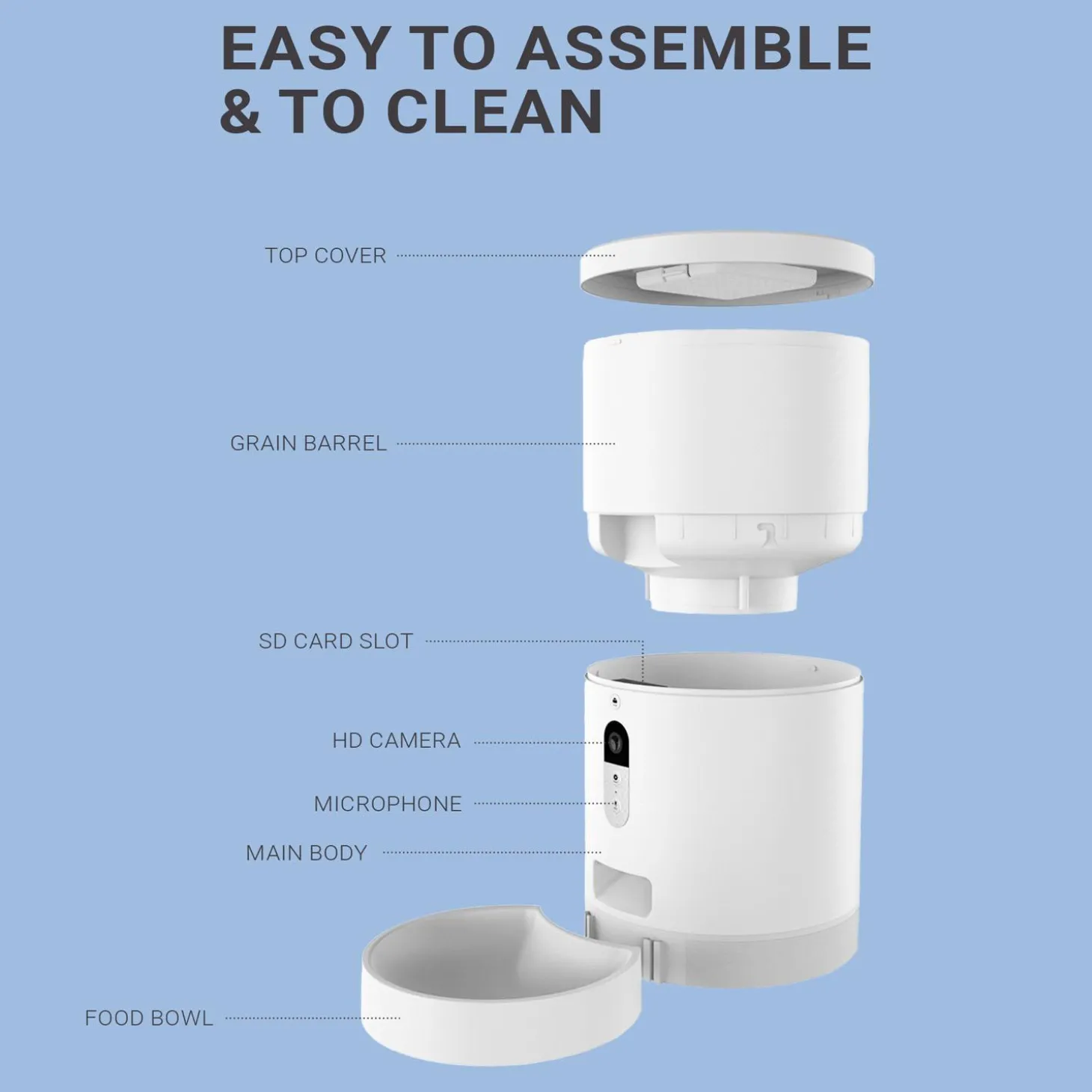 - Built-In HD Camera with Night Vision: keep an eye on your furry friend at mealtime with the integrated HD camera featuring night vision capabilities. Monitor your pet in crystal-clear quality, day or night, and capture video recordings of their mealtime antics