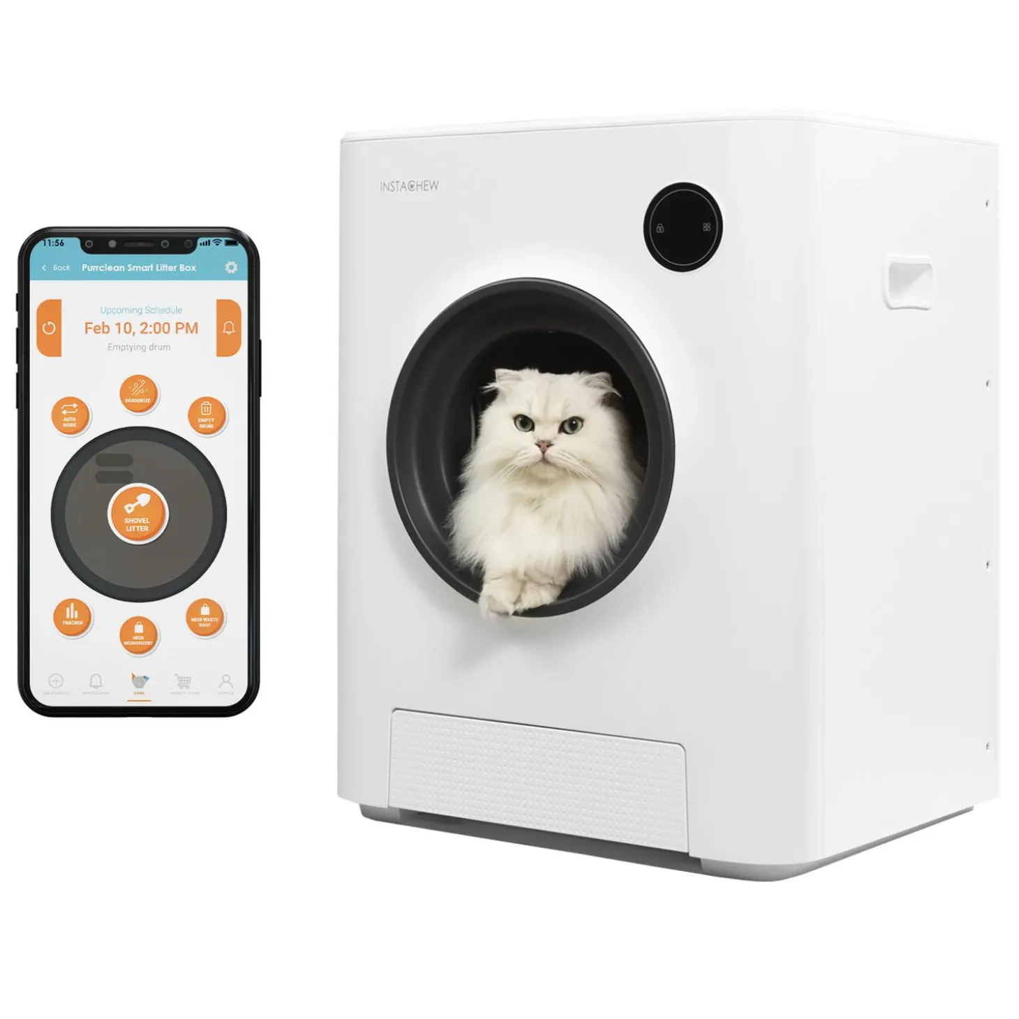 - Smartphone Integration: control your litter box remotely through the Instachew Infinity App, allowing you to schedule scooping, cleaning, and deodourizing from anywhere